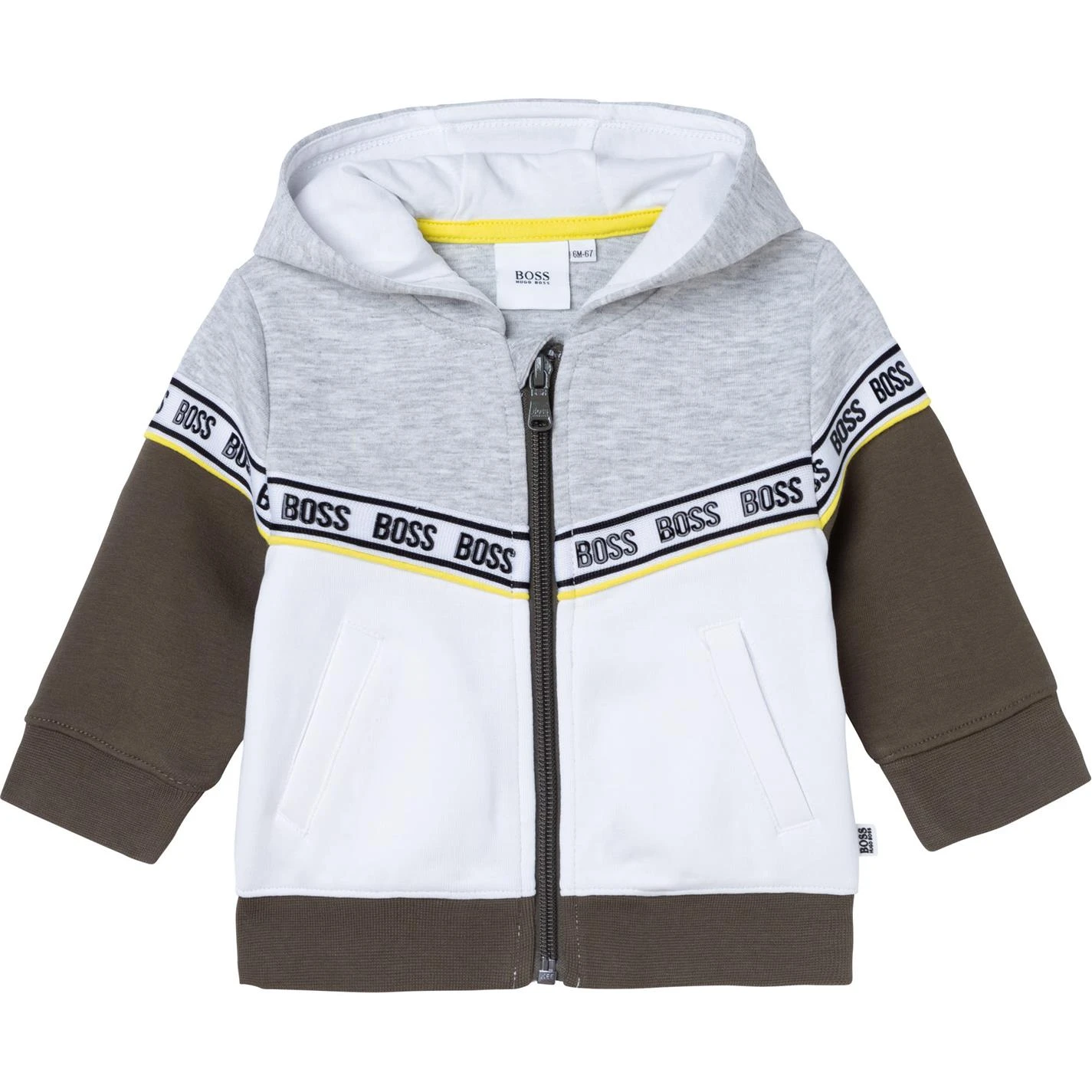 This double jersey and polyester BOSS hooded tracksuit cardigan is a must-have for chilly evenings. The garment has front pockets, a zip fastening and braided trim marked with the brand logo. We suggest teaming it with the matching Bermuda shorts or trousers.