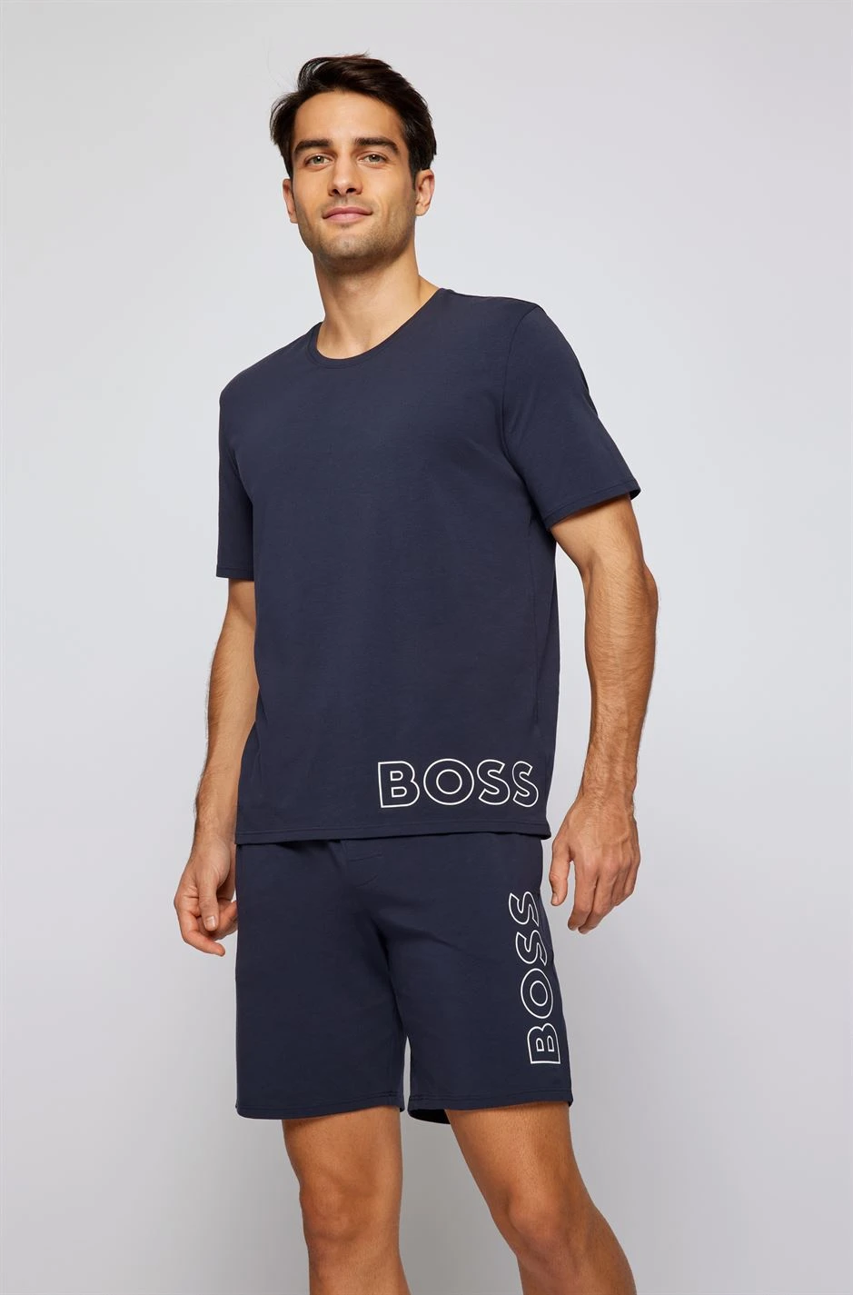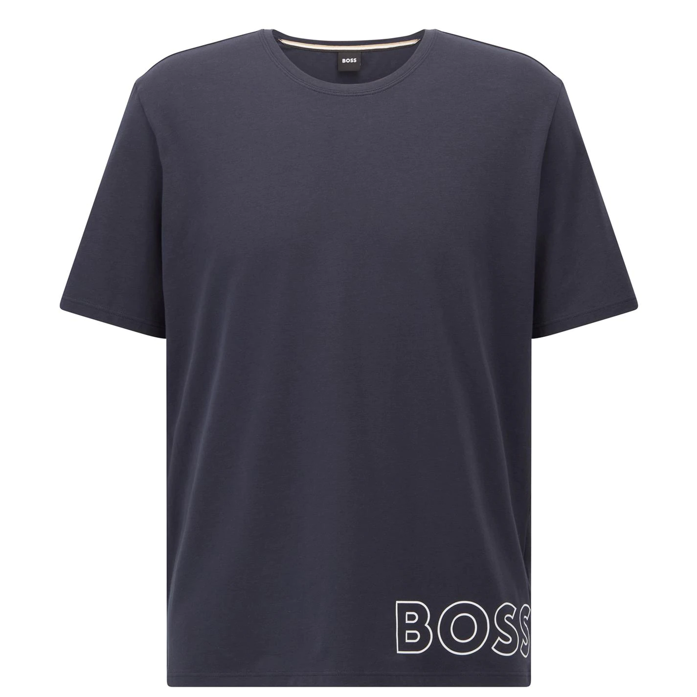 Refresh your collection with this BOSS Identity T Shirt. Constructed with a ribbed crew neckline and short sleeves for a classic look, it features elasticated hems for a comfortable fit. This t shirt is a solid colouring throughout designed with a signature logo and is complete with BOSS branding for a high quality appeal.