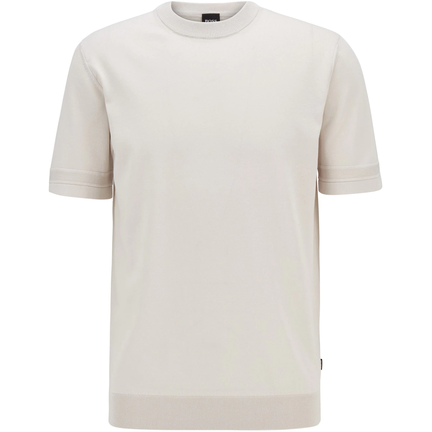 Update your collection with this BOSS Imtteo Knitted Top. Crafted with a ribbed crew neckline and short sleeves for a classic look, it features elasticated hems for a comfortable fit. This top is a solid colouring throughout designed with a signature logo and is complete with BOSS branding.