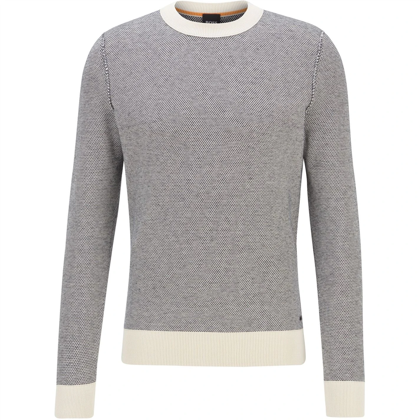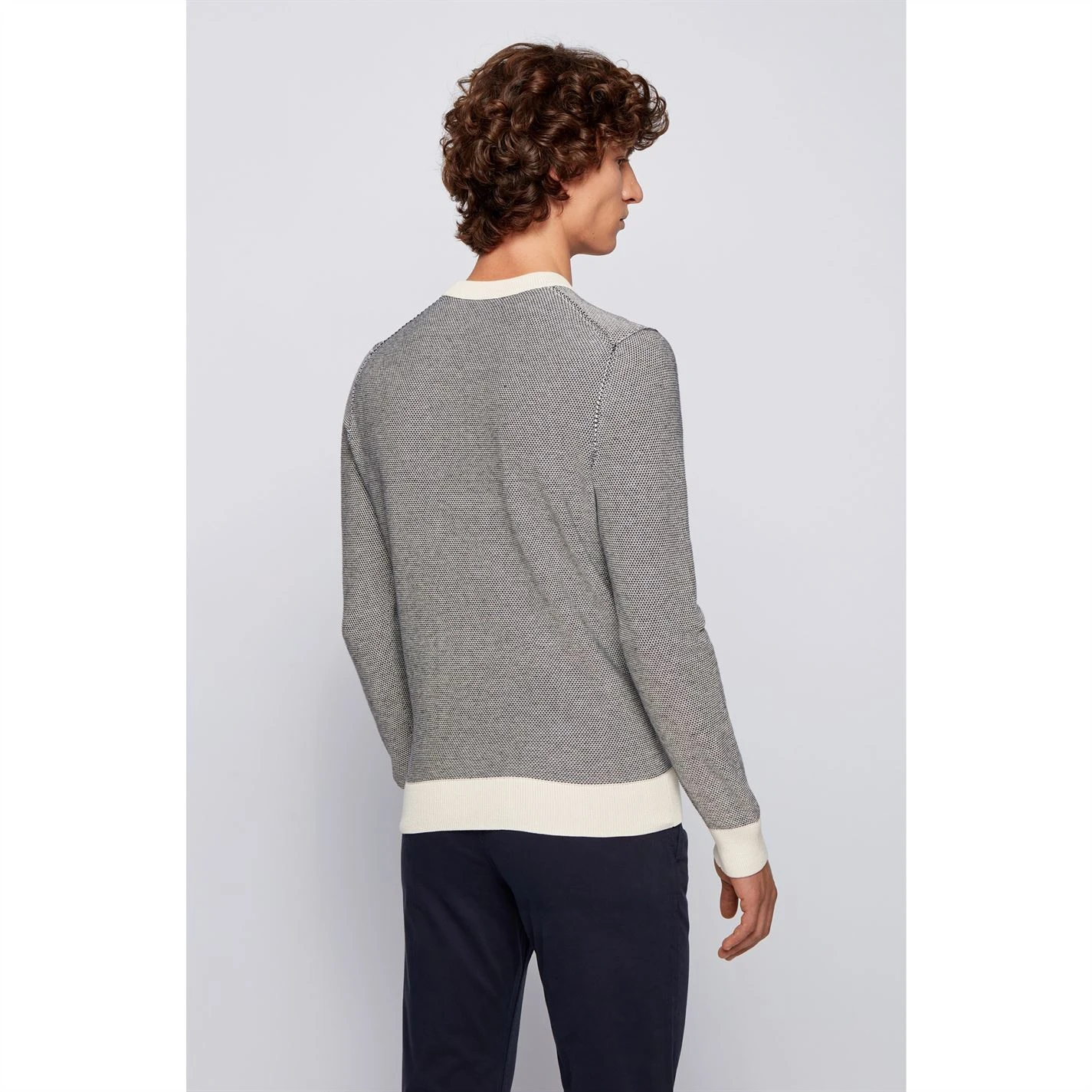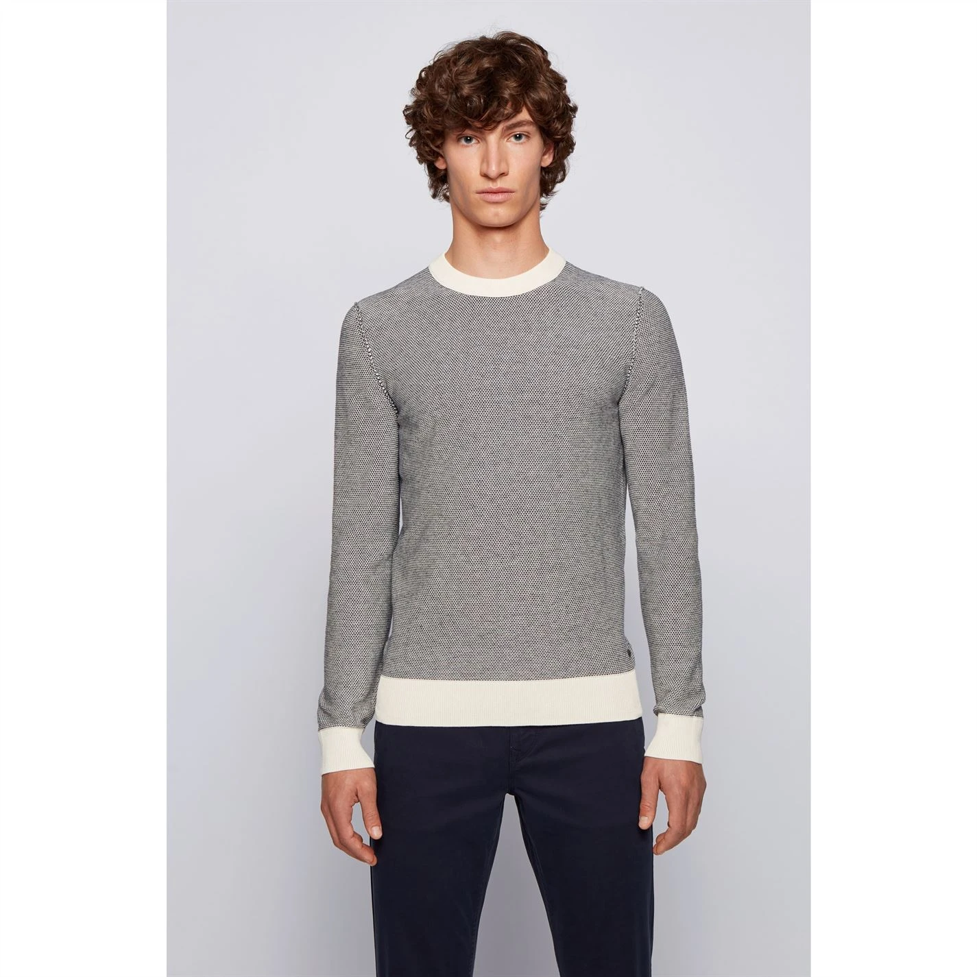 Elevate your collection with this BOSS Kamarsos Jumper. Crafted with long sleeves and a ribbed crew neckline for a classic look, it features elasticated hems for a comfortable fit. This jumper is a patterned design with a signature logo tab and is complete with BOSS branding.