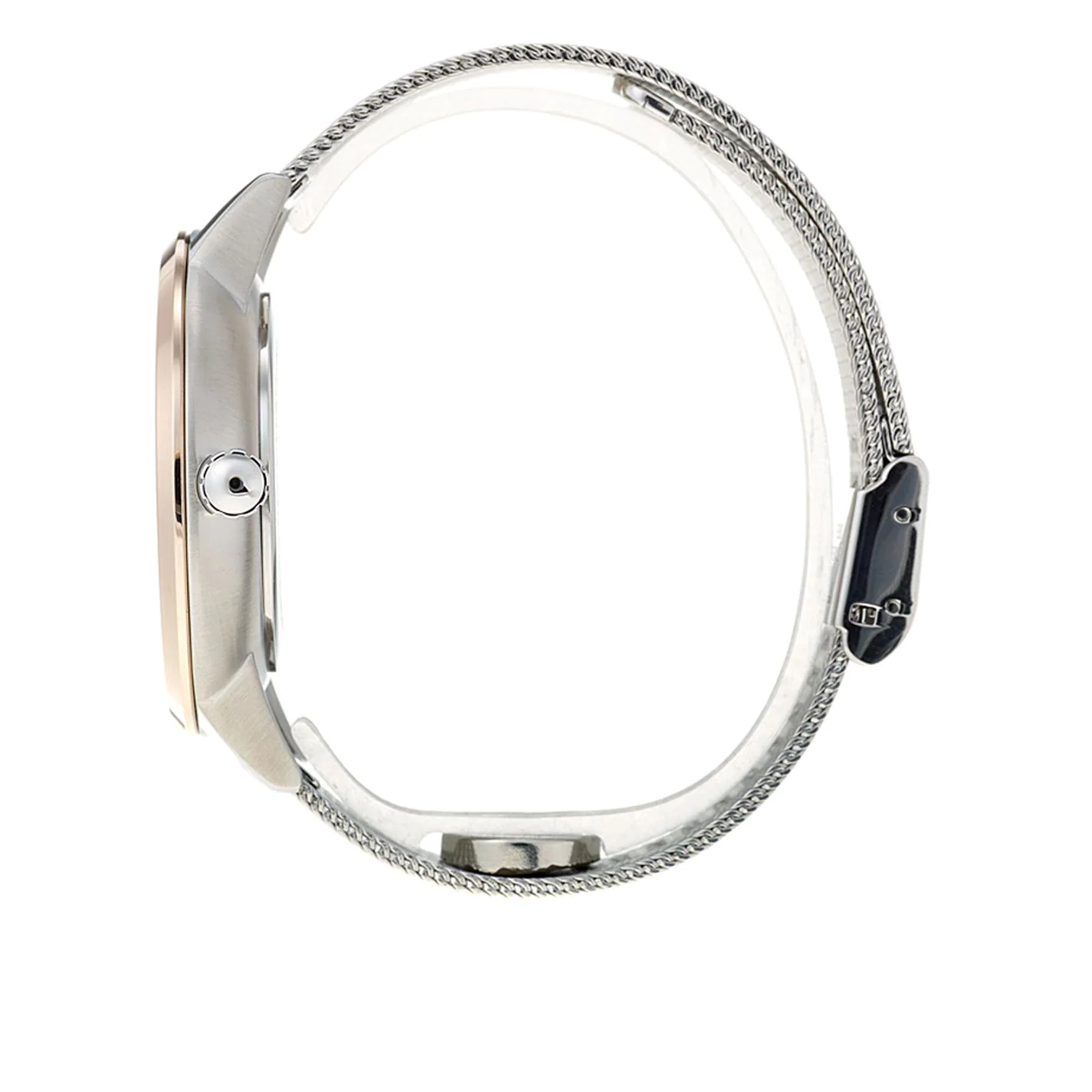 essential, every day whilst taking time to reflect on and appreciate special moments of wonder that surround her at every step of her daily life. Featuring a stainless steel 38mm case, carnation gold sunray brush dial, stainless steel mesh bracelet and BOSS buckle. Four diamonds on the dial adds the final sparkly touch. Water resistant to 3ATM.