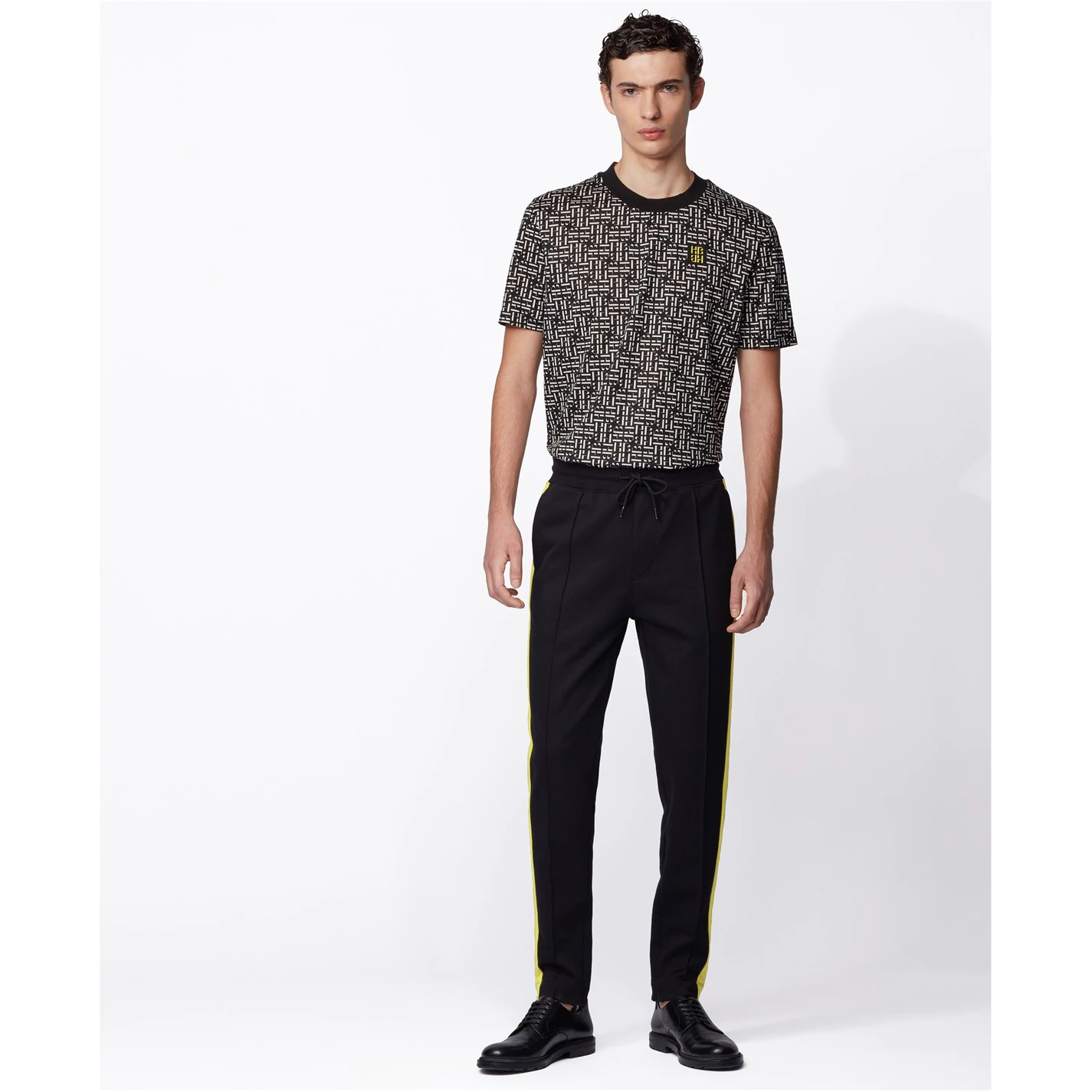 Elevate your collection with these BOSS Lamont Jogging Pants. Crafted with an elasticated waistband and drawstring adjustment for a secure fit, they feature two hand pockets for a classic look. These joggers are a solid colouring throughout designed with stripe detailing and are complete with BOSS branding.