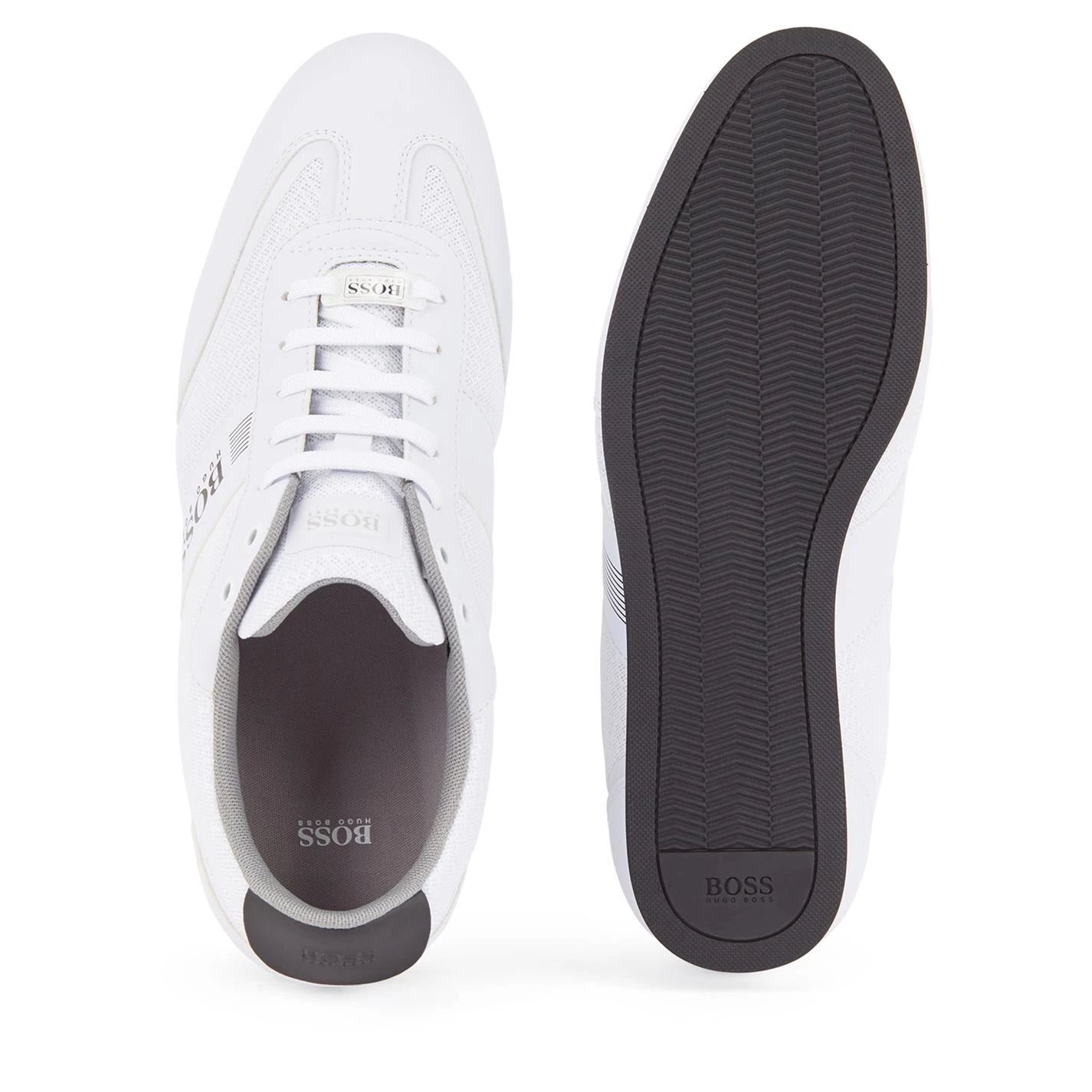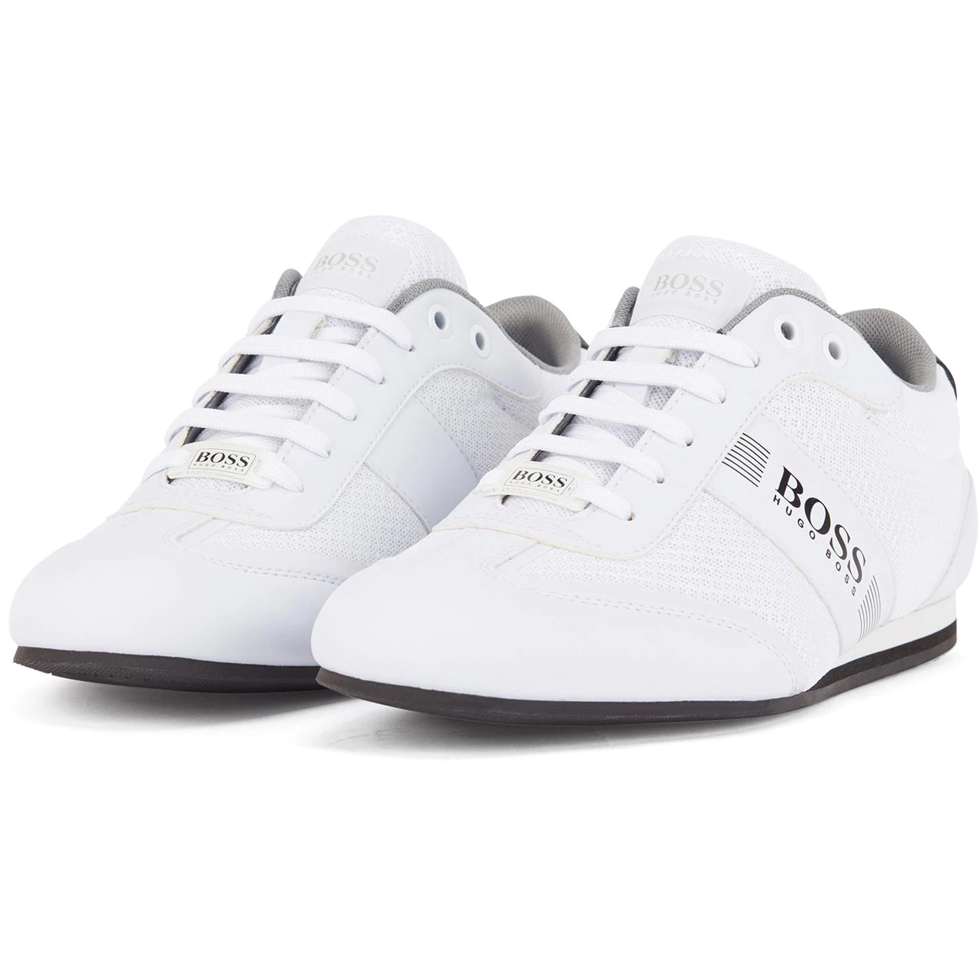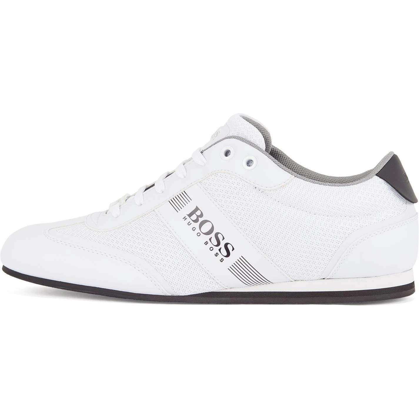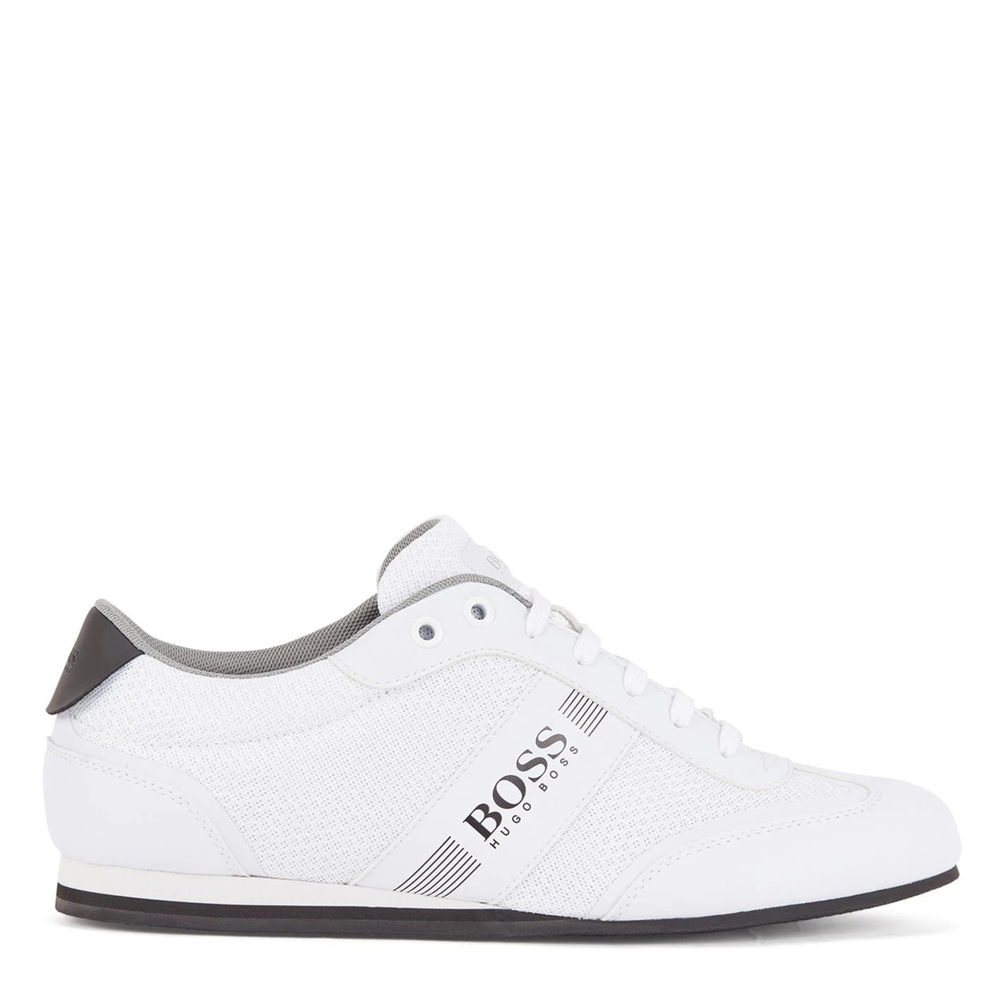 Lend a contemporary touch to your footwear assortments with these low top trainers by Boss. Crafted from durable material, this pair then further features a breathable meshed upper accented with rubber panelling for added comfort. Punctuated with a lace-up closure, this style is finished with the brand iconic logo emblazoned to the sides and tongue for a designer appeal. Pair these with denim shorts and a casual t-shirt for a comfy summer look. Please note: The style you receive may vary from the image shown.