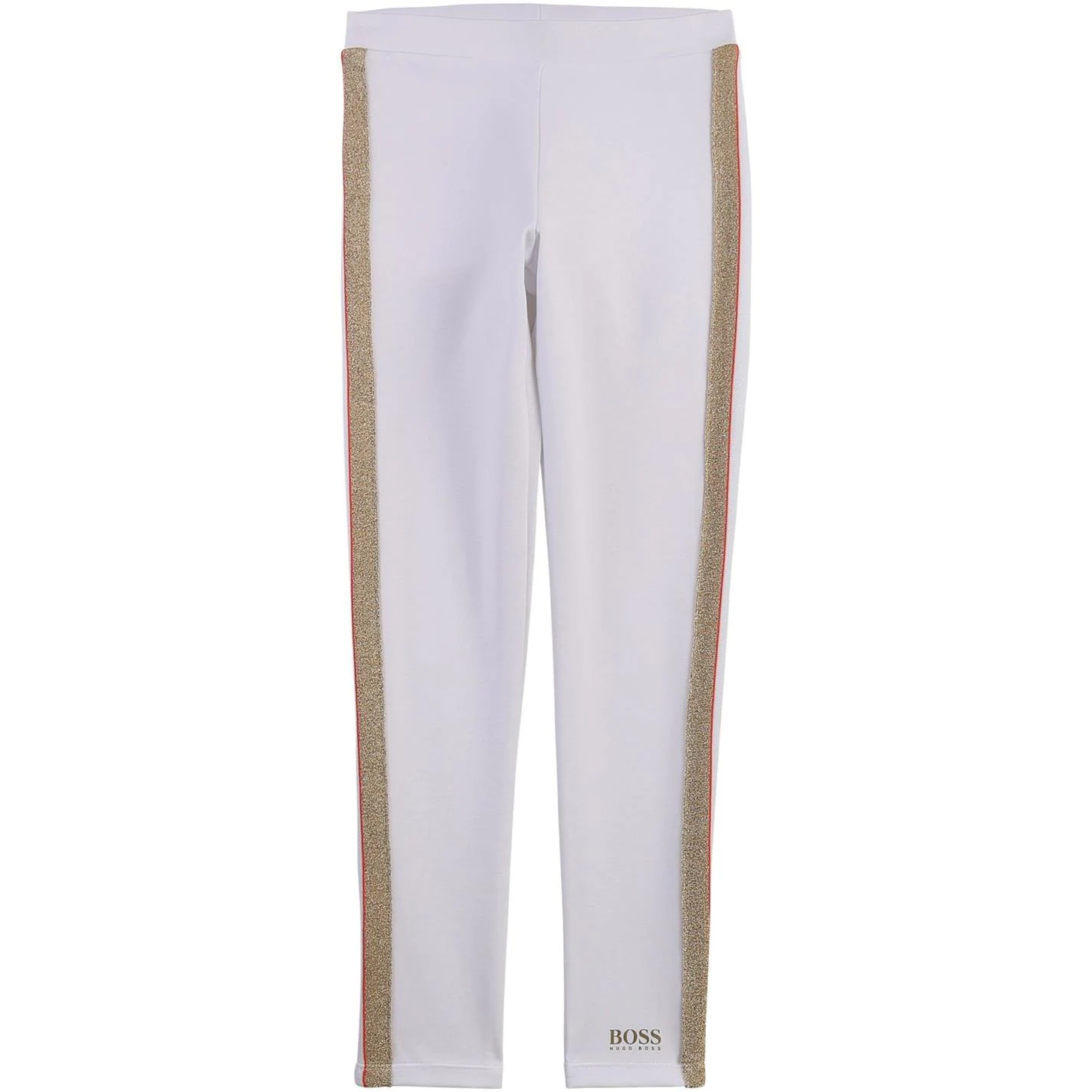 These BOSS girls’ leggings are right on trend, with their iridescent metallic stripes on the sides. The milano knit design features a wide, comfortable elasticated waistband. The BOSS logo is printed on the left leg.