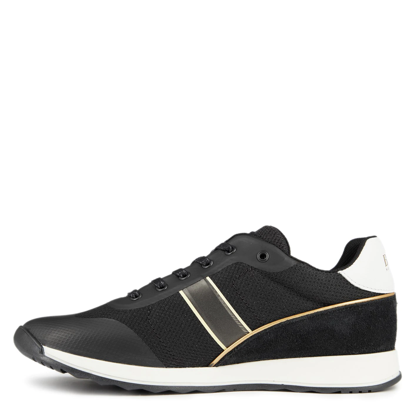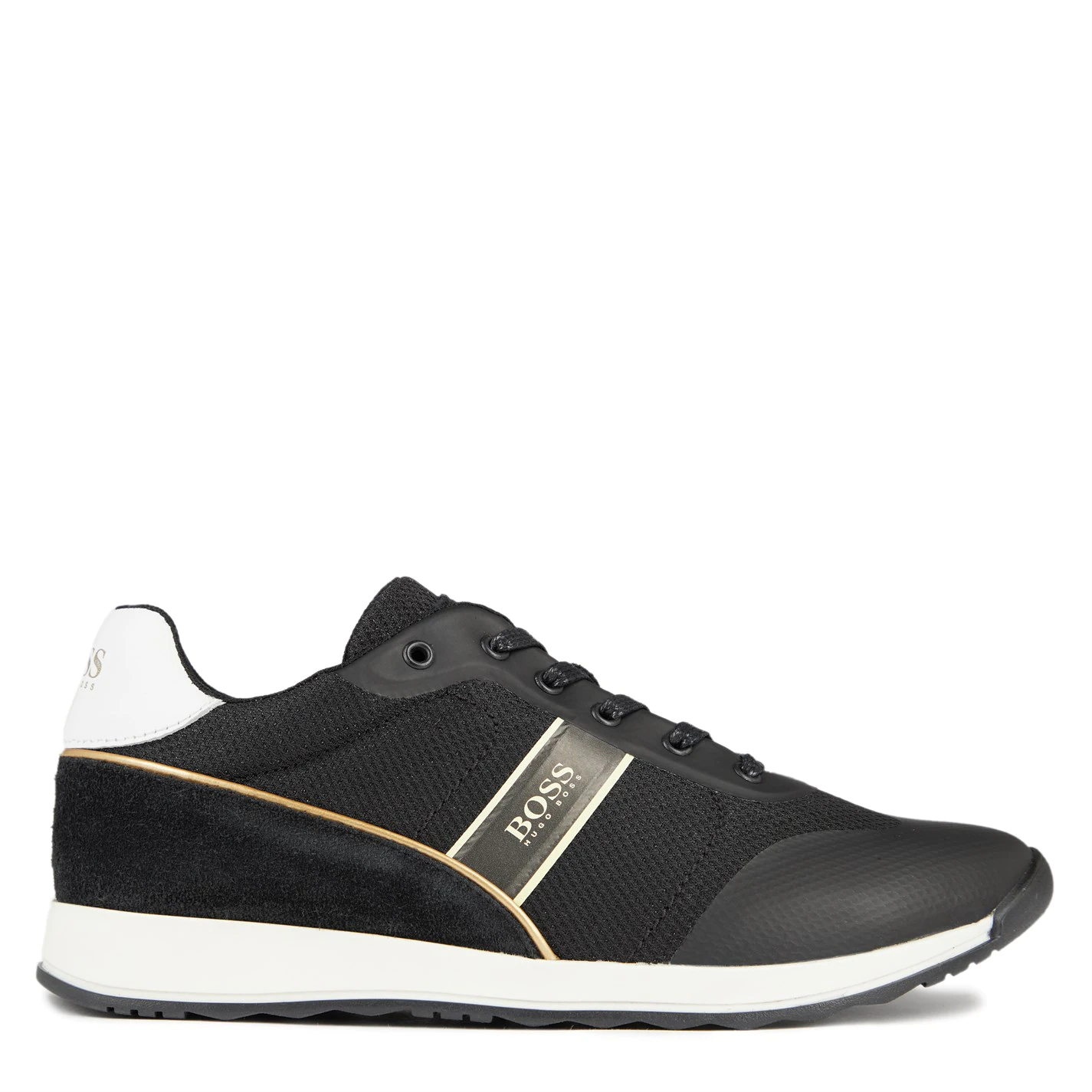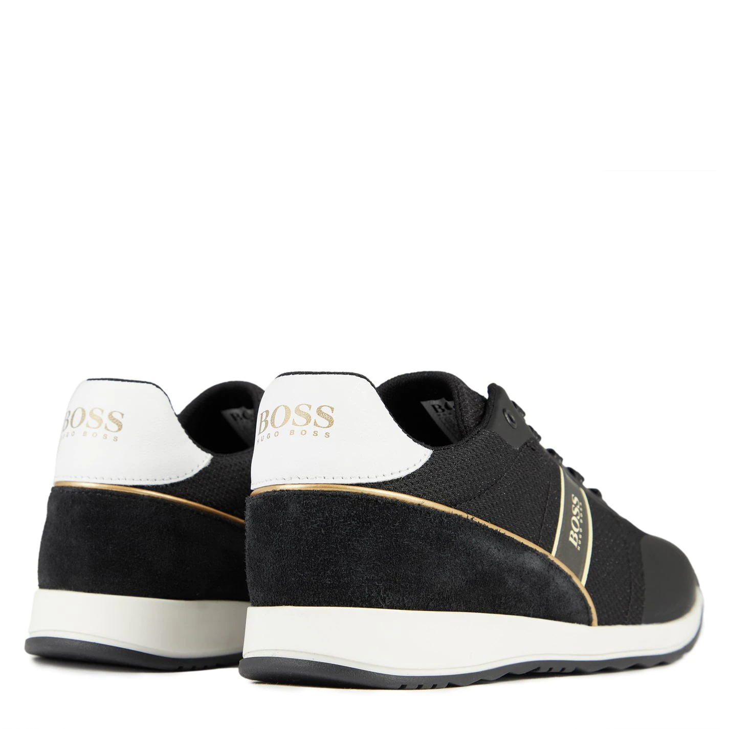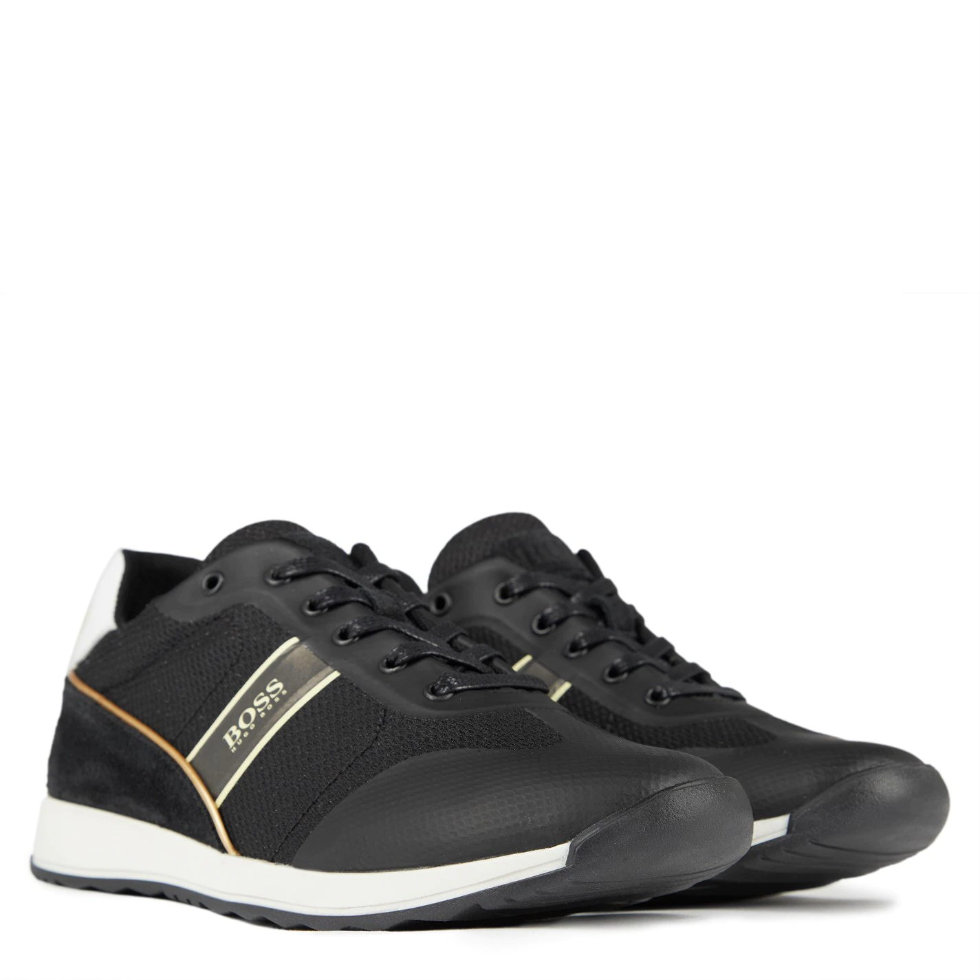 These BOSS lace-up leather trainers for children feature mesh panels. The top of the counter and the side are printed with the BOSS logo. The microfibre insole is sweatproof and non-allergenic. These shoes are available in sizes up to 6.5 and are sold in a shoe box.