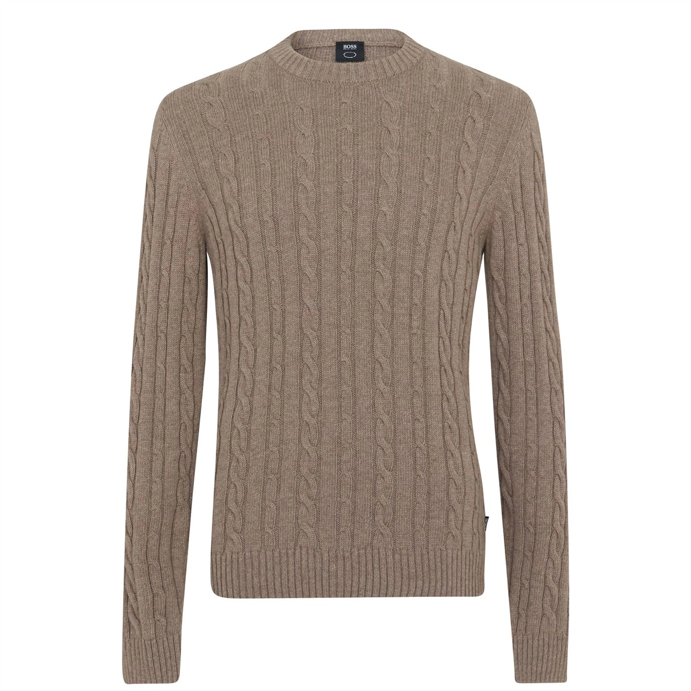 Invite a Autumn/Winter staple into your wardrobe with the Boss Namazio Jumper. Made from a soft wool cashmere blend, this jumper comes styling a crew neckline and long sleeves. The cable knit construction is a timeless classic and the jumper is complete with Boss branding for a high quality appeal.