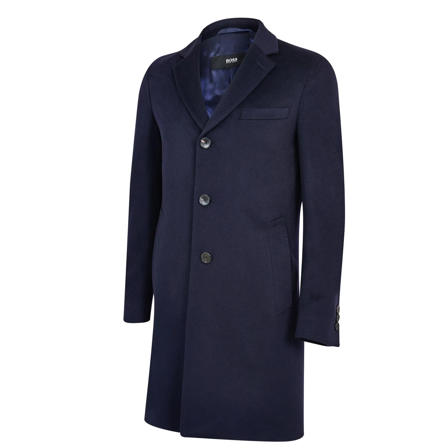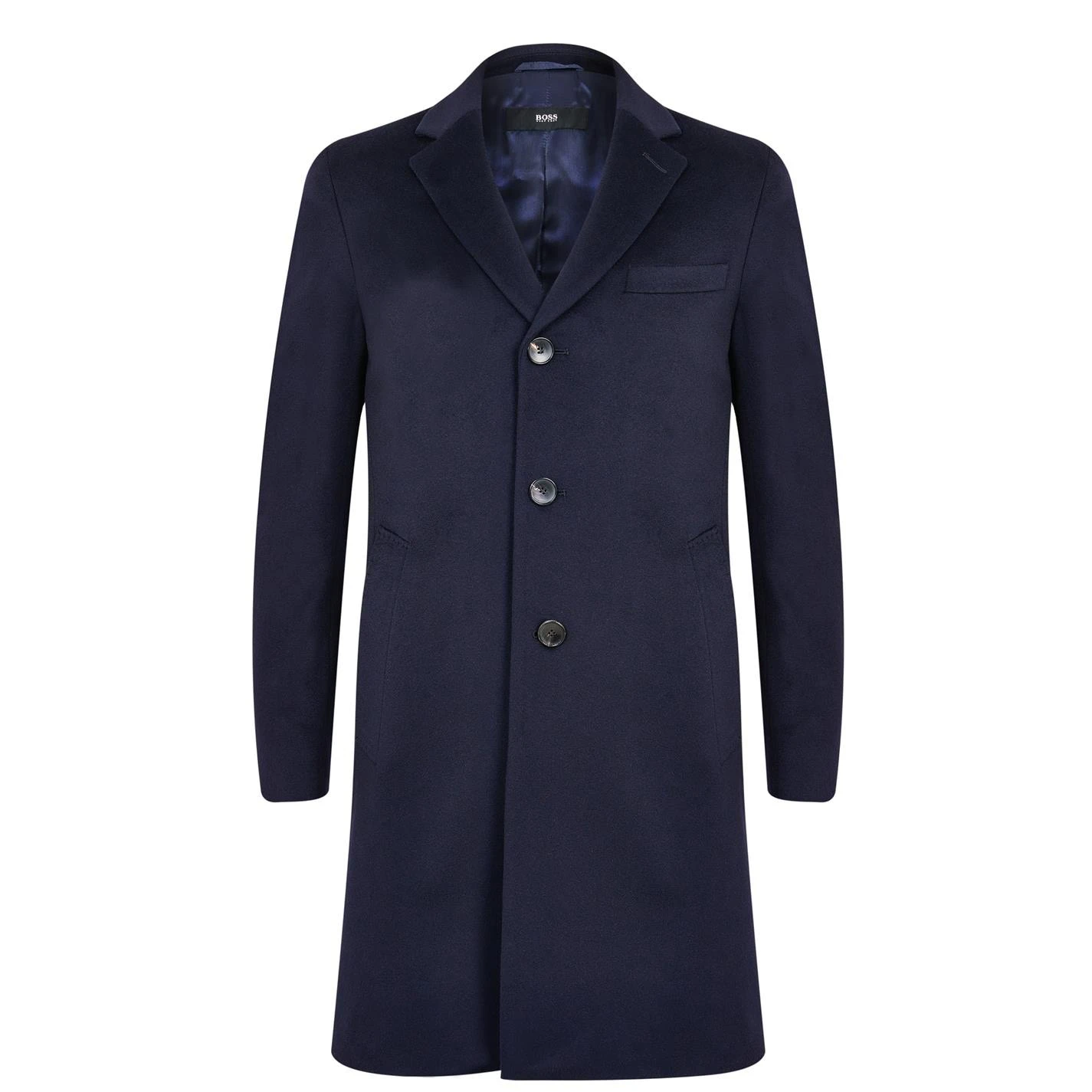 Update your collection with this BOSS Nye 2 Coat. Crafted with a folded collar and full button fastening for a secure fit, it features long sleeves and three pockets for a classic look. This coat is a solid colouring throughout and is complete with BOSS branding.