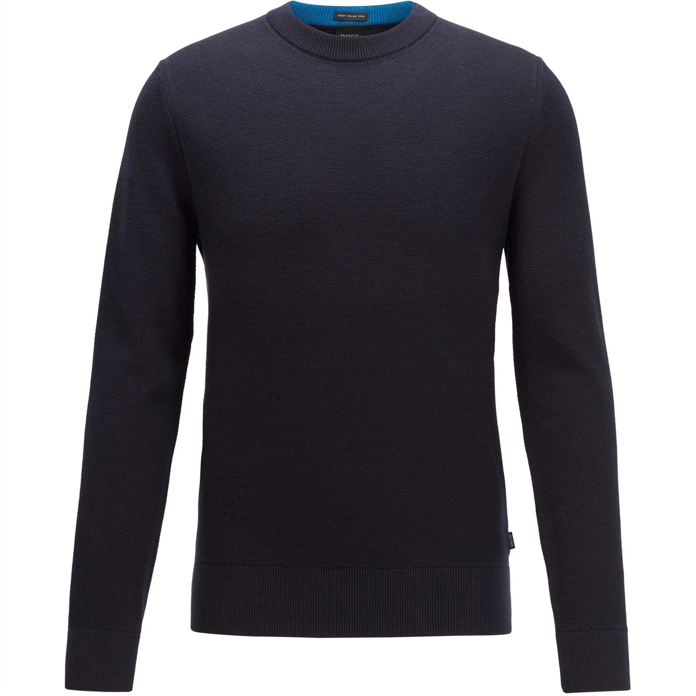 Enhance your collection with this BOSS Ocaio Knit Jumper. Constructed with long sleeves and a ribbed crew neckline for a classic look, it features elasticated hems for a comfortable fit. This jumper is a solid colouring throughout designed with a signature logo and is complete with BOSS branding.