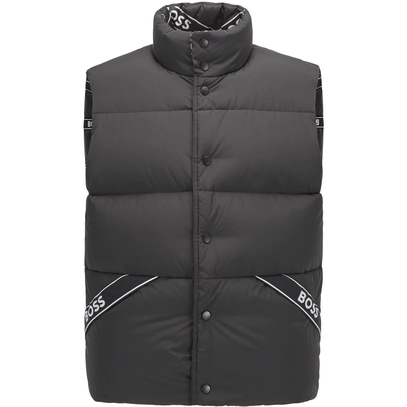 Enhance your collection with this BOSS Oriok Tape Gilet. Constructed in a sleeveless style with full popper fastening for a secure fit, it features two hand pockets for a classic look. This gilet is a solid colouring throughout and are complete with BOSS branding.