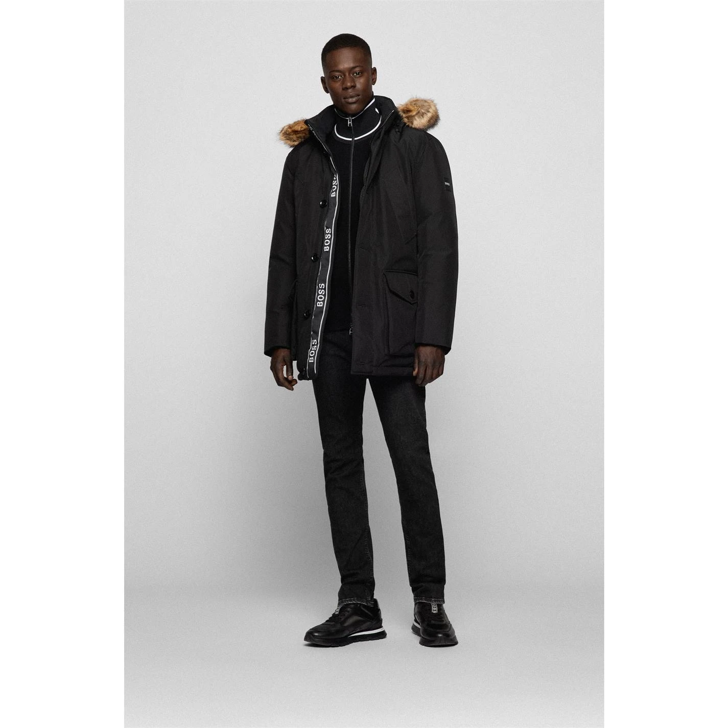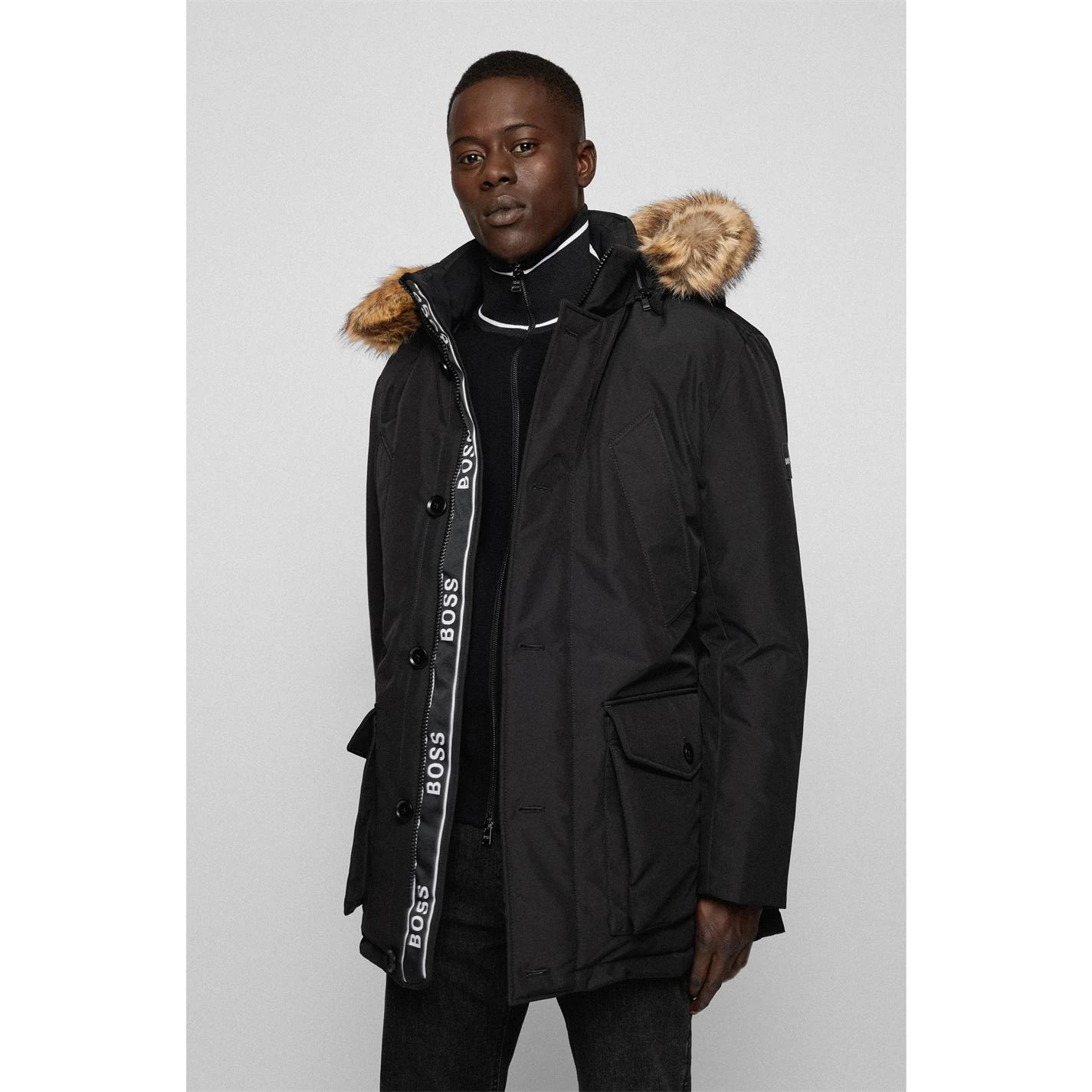 The Boss Osias Parka Jacket is a great addition to your autumn and winter coat collection, crafted with a central zip fastening with a button closure storm flap. Four large pockets to the chest provides ample space for all your essentials and a faux fur trim to the hood gives a stylish touch, finished off with the classic Boss branding.