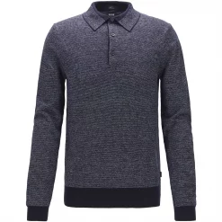 Enhance your collection with this BOSS Ostini Knit Polo Shirt. Constructed with a folded collar and a three button placket for secure fit, it features long sleeves with comfortable ribbed cuffs for a classic look. This polo shirt is a solid colouring throughout designed with a signature logo and is complete with BOSS branding.