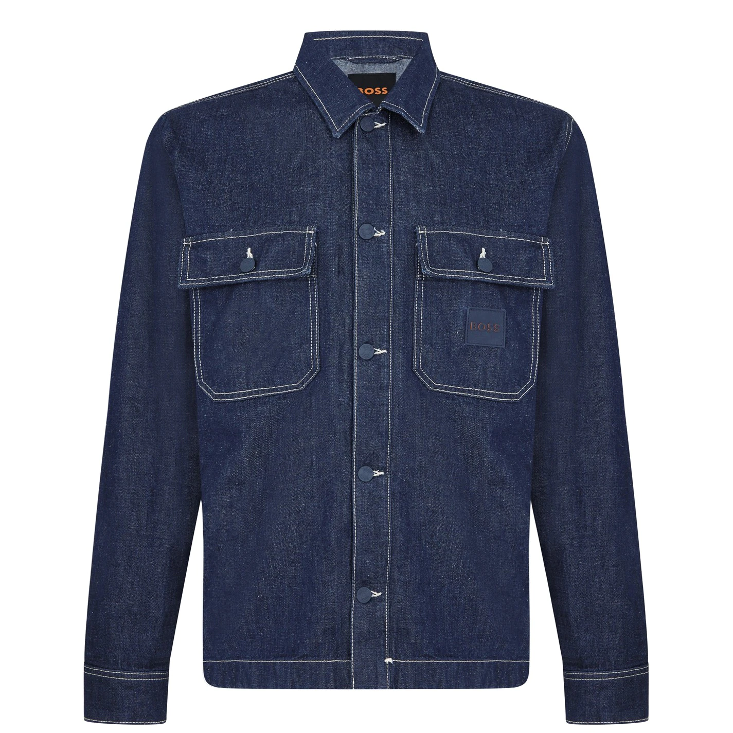 Update your collection with this BOSS Lovvo Overshirt. Crafted with a folded collar and full button fastening for a secure fit, it features long sleeves with button cuffs and two chest pockets for a classic look. This overshirt is a solid colouring throughout designed with a signature logo and is complete with BOSS branding.