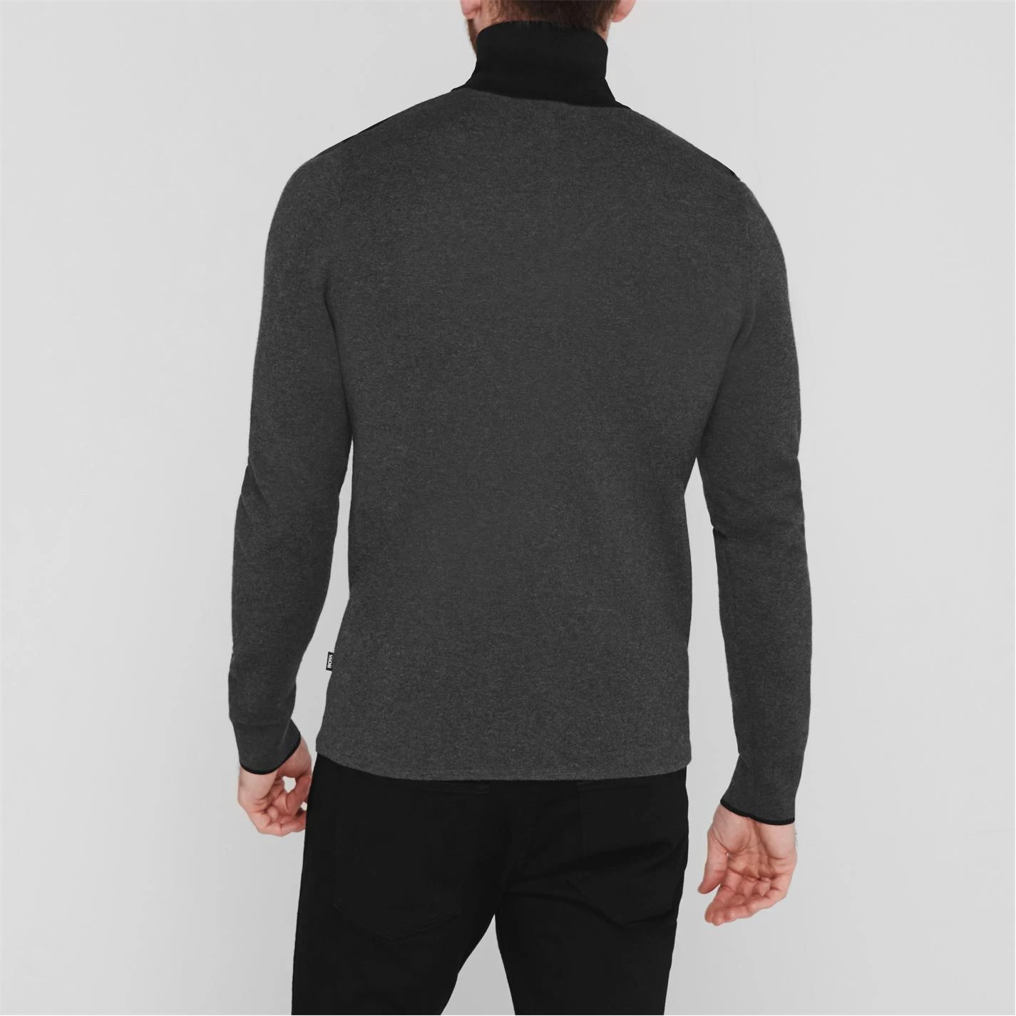 Update your autumn collection with this Padas Quarter Zip Jumper from Boss. This premium fine knit piece offers a cotton and virgin wool blend in a regular fit with quarter zip closure, a funnel neckline and long sleeves with a straight cut hem. There is subtle ribbing along the cuff and neckline with solid colour throughout the stretchable exterior and contrast panelling to the shoulders, zip, funnel neck and cuffs. The appearance is finished with a Boss tag logo to the side of the hem for easy appreciation where deserved. 70% Cotton, 30% Virgin wool. Machine washable.