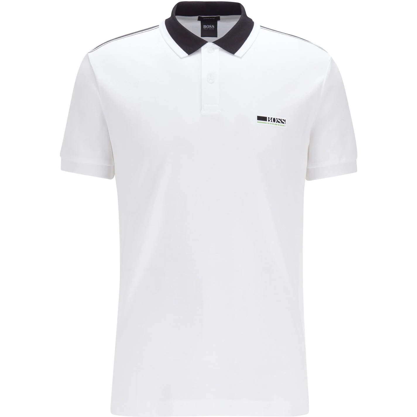 Update your collection with this BOSS Paddy 8 723 Polo Shirt. Crafted with a folded collar and a two button fastening placket for a secure fit, it features short sleeves for a classic look. This polo shirt is designed with a signature logo and is complete with BOSS branding.