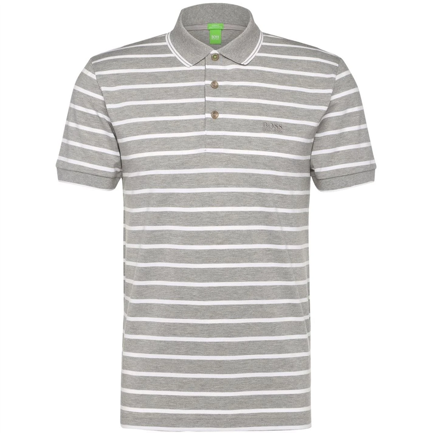 Keep it smart and playful with the Paddy Polo Shirt from Boss. Made from quality cotton, this polo features a standard size fit with a cutaway collar, 3 button placket and short sleeves with a thick stripe design all over and double tipped collar. There is ribbing along the cuff and neckline for a precise fit with embroidered Boss branding to the chest to complete the look. 100% Cotton. Machine washable.