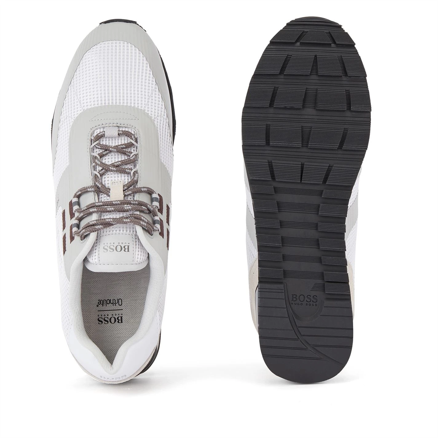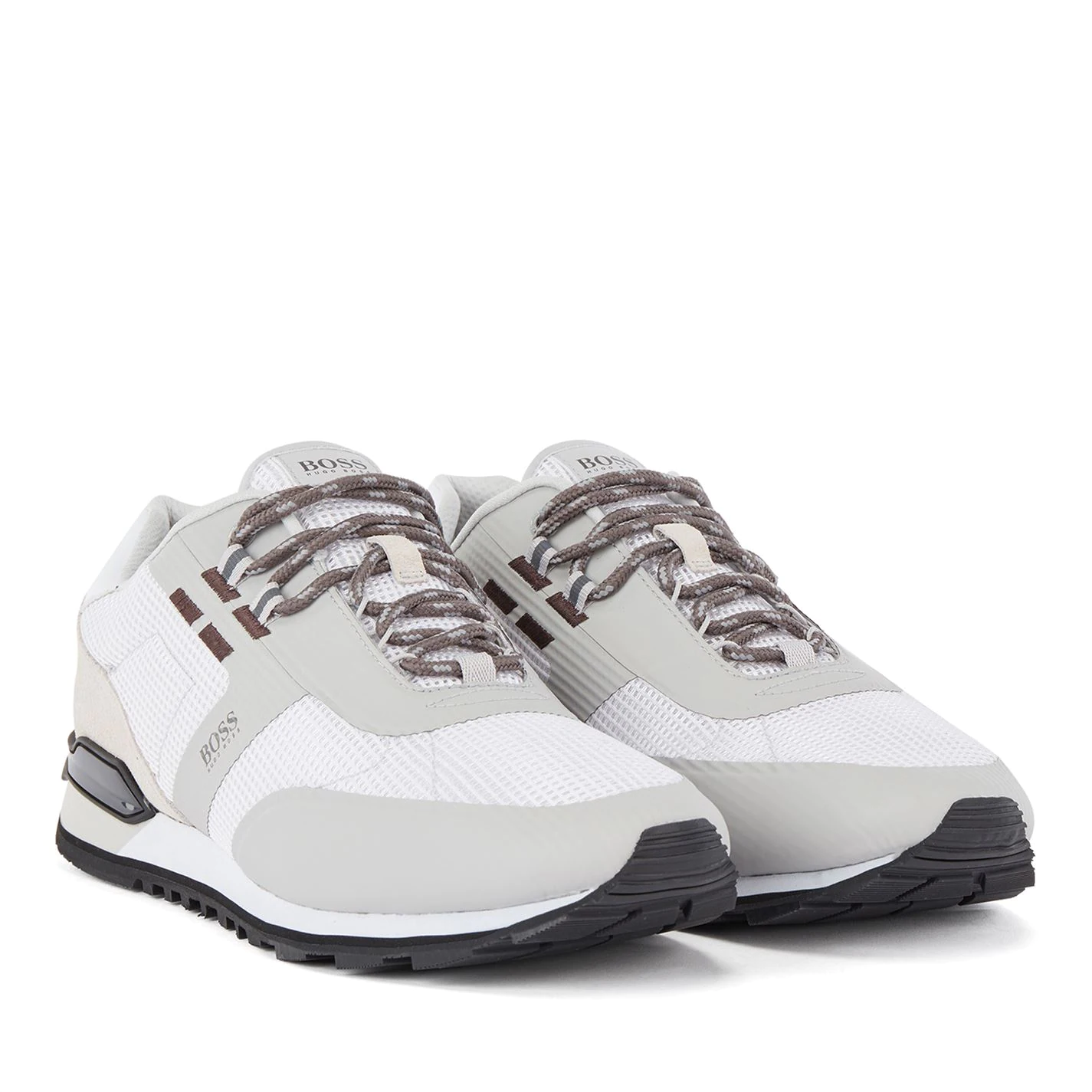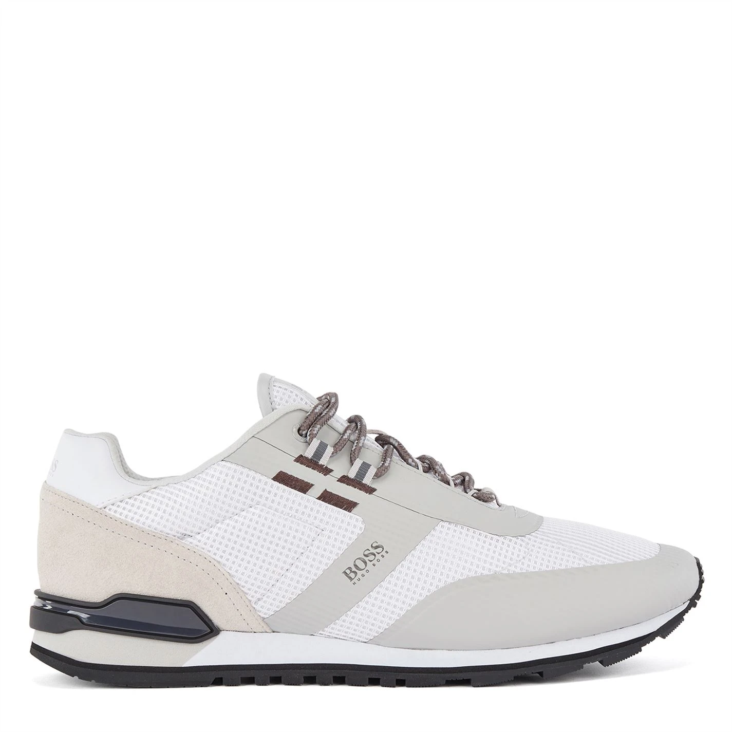 The Boss Parkour Nylon Trainers are a great addition to your casual wardrobe, featuring a shaped ankle collar with a lace fastening for a secured fit, a cushioned insole and a moulded outsole provide all day comfort. A panel design across the upper along with tonal top stitching give a great casual look, completed with the Boss branding.