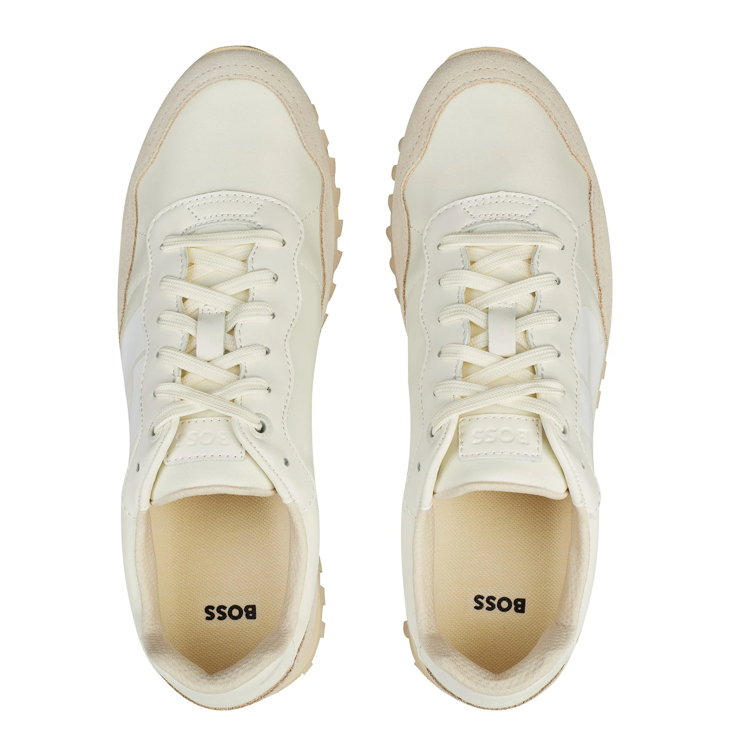 Your footwear collection with these Parkour Runner Trainers by Boss. Crafted from durable material, these shoes are shaped to round-toe design for a comfortable fit. Featuring lace-up closure and rubber sole for extra grip and traction, these trainers are finished with the brand logo at the side and back for designer appeal. Pair these with cropped jeans and a casual t-shirt for a striking look.
