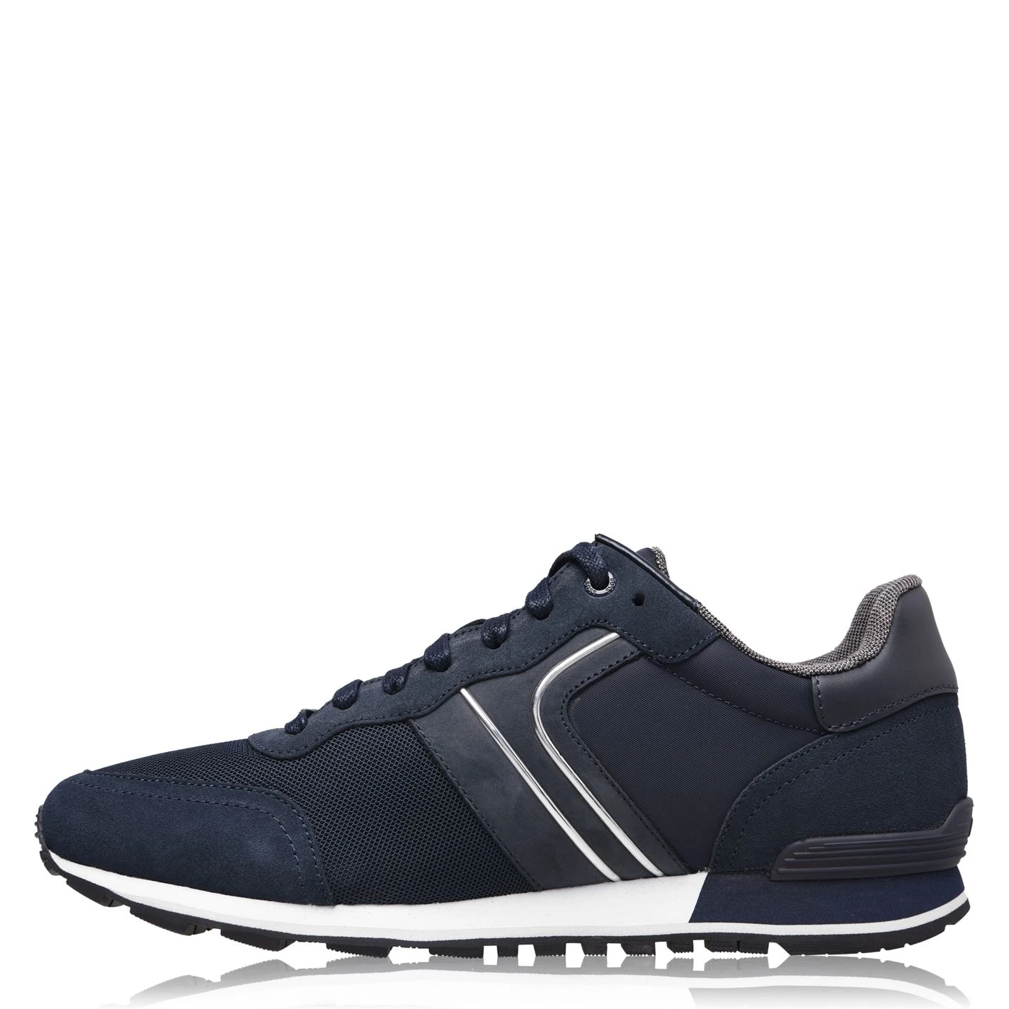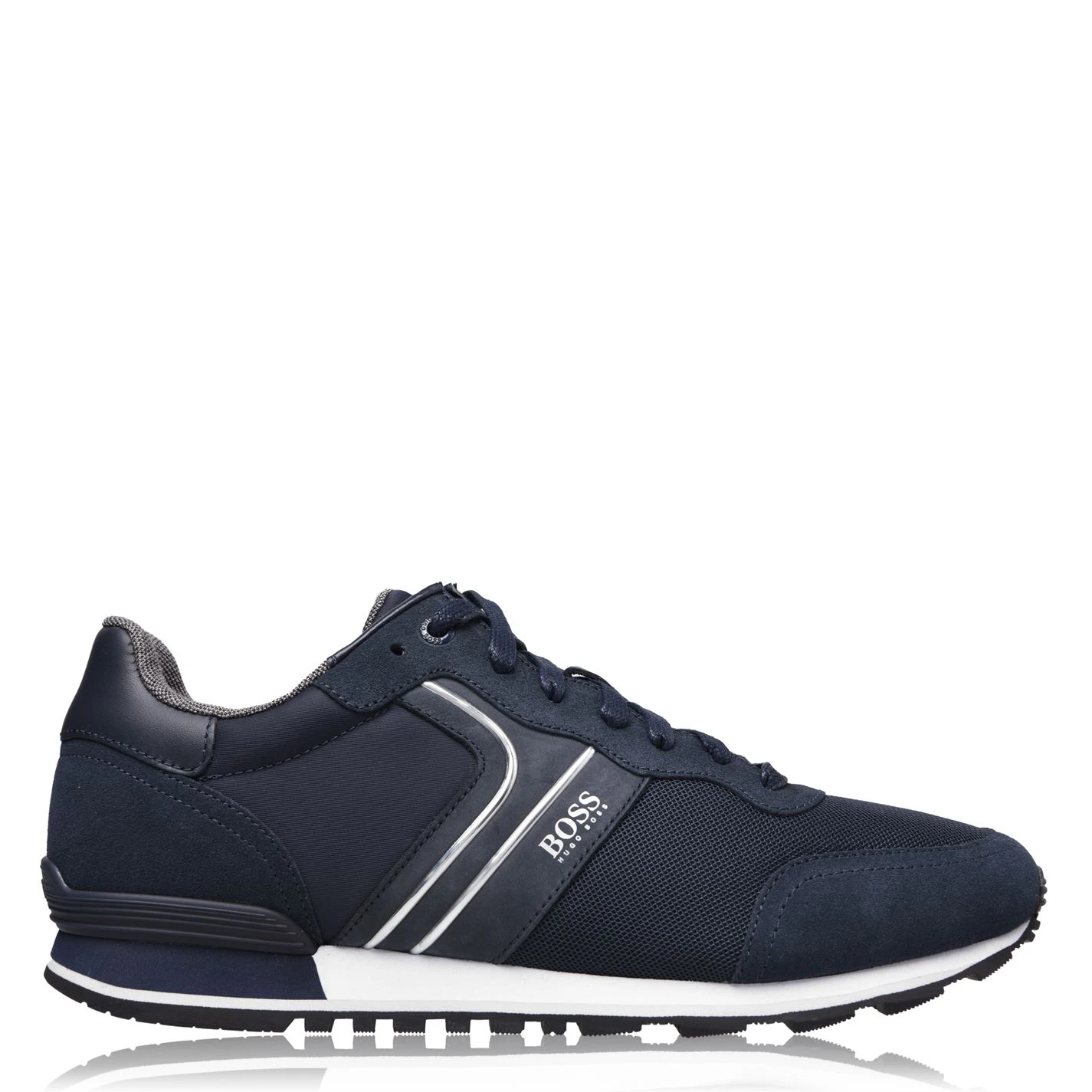 Instantly uplift your footwear collection with these trainers by Boss. Crafted from durable material, these shoes are shaped to round-toe design for a comfortable fit. Featuring lace-up closure and rubber sole for extra grip and traction, these trainers are finished with the brand logo at the side and back for designer appeal. Pair these with cropped jeans and a casual t-shirt for a striking look. Please note: The style you receive may vary from the image shown.