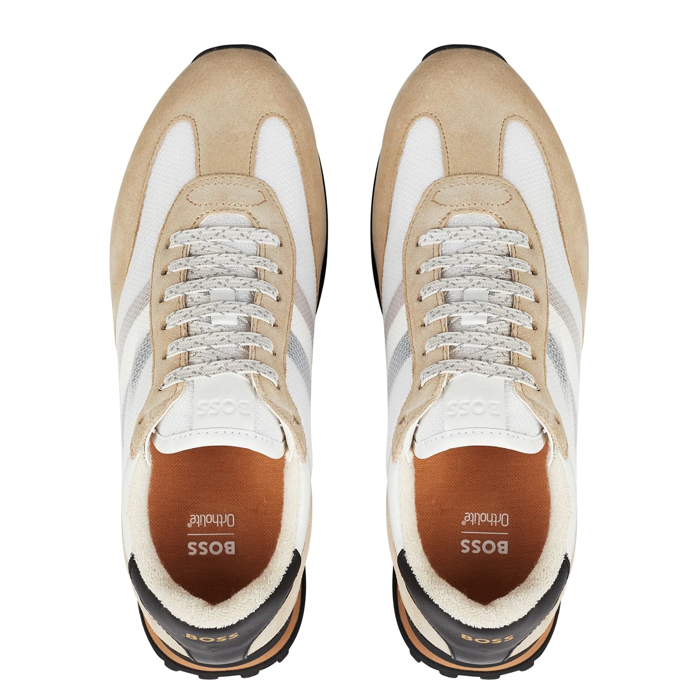 Refresh your classics collection with these Parkour Trainers by Boss. This contemporary pair are crafted on top of a rubber tread sole and feature a synthetic upper section with structured nylon and rubberised detailing. With a striped patterning to the side and a contrasting heel section, they are secured with a lace up closure and finished with the Boss branding for a premium look