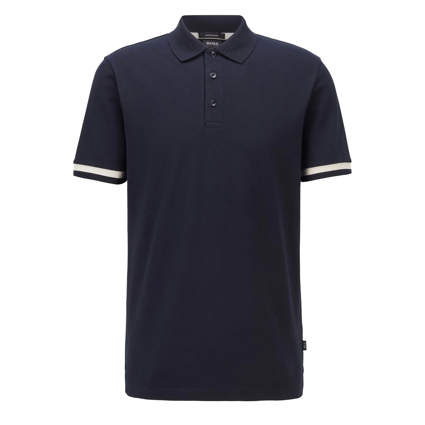 Update your collection with this BOSS Parlay 109 Polo Shirt. Crafted from a lightweight fabric with a collared neckline leading to a three button placket for an easy wear, it features short sleeves with comfortable ribbed trims. This polo shirt is designed with tipped hems and is complete with signature BOSS branding.