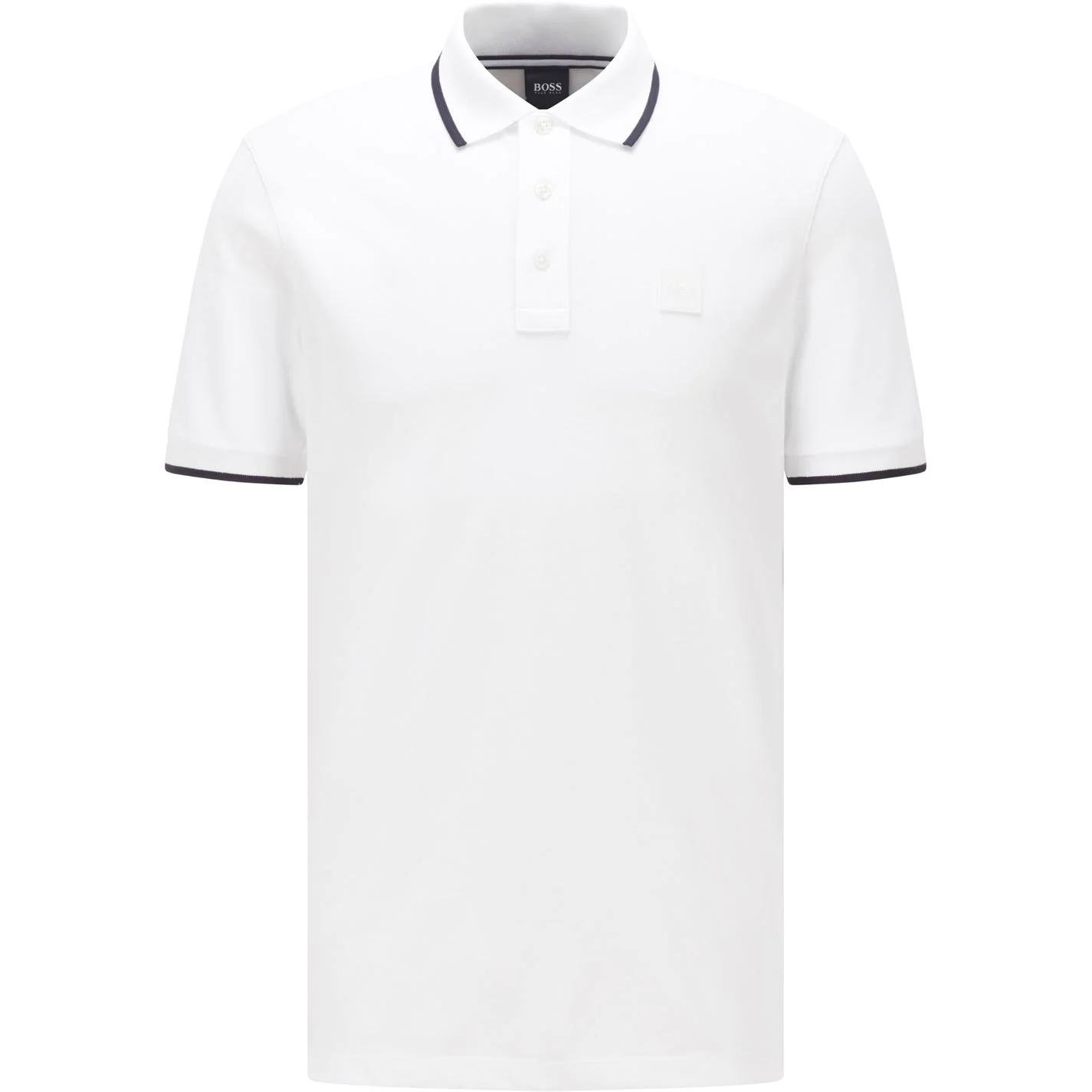 Elevate your collection with this BOSS Parlay 116 Polo Shirt. Crafted with a folded collar and a three button fastening placket for a secure fit, it features short sleeves for a classic look. This polo shirt is designed with a signature logo and is complete with BOSS branding.
