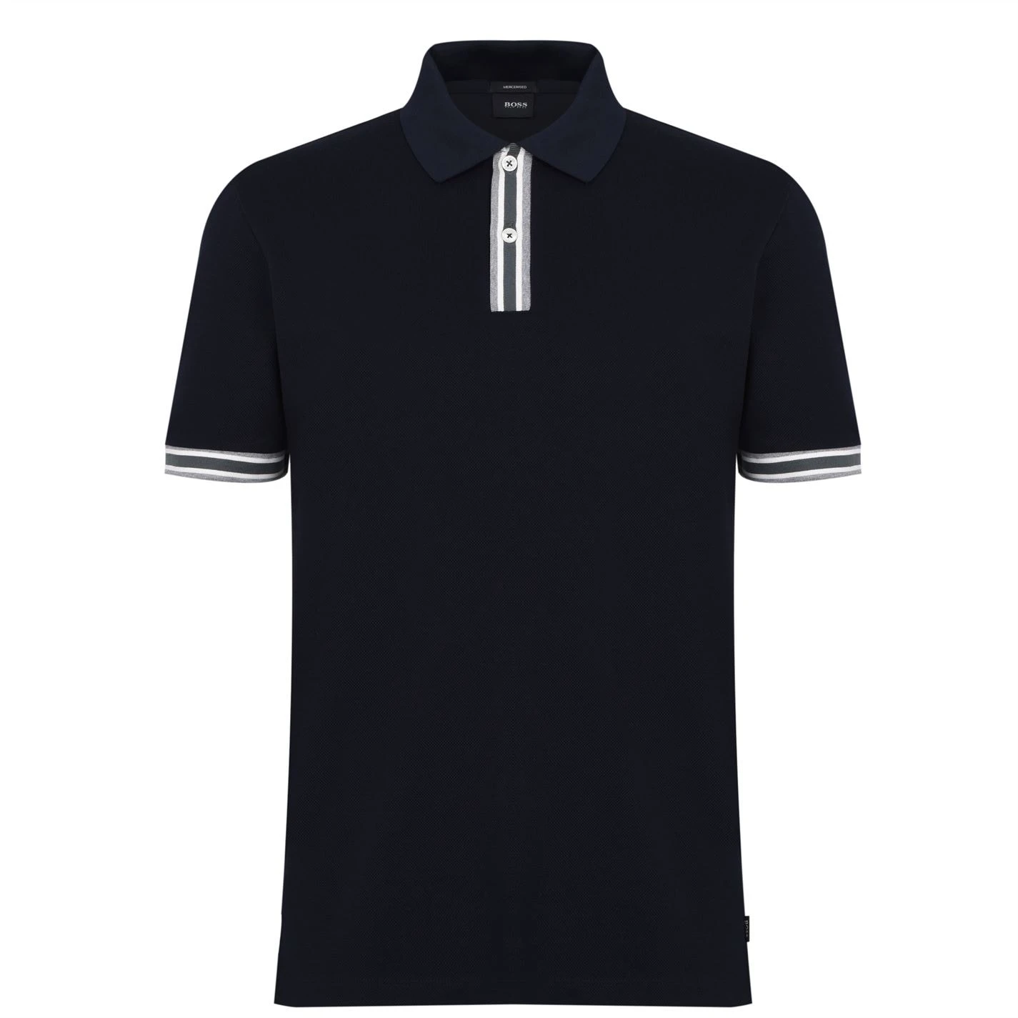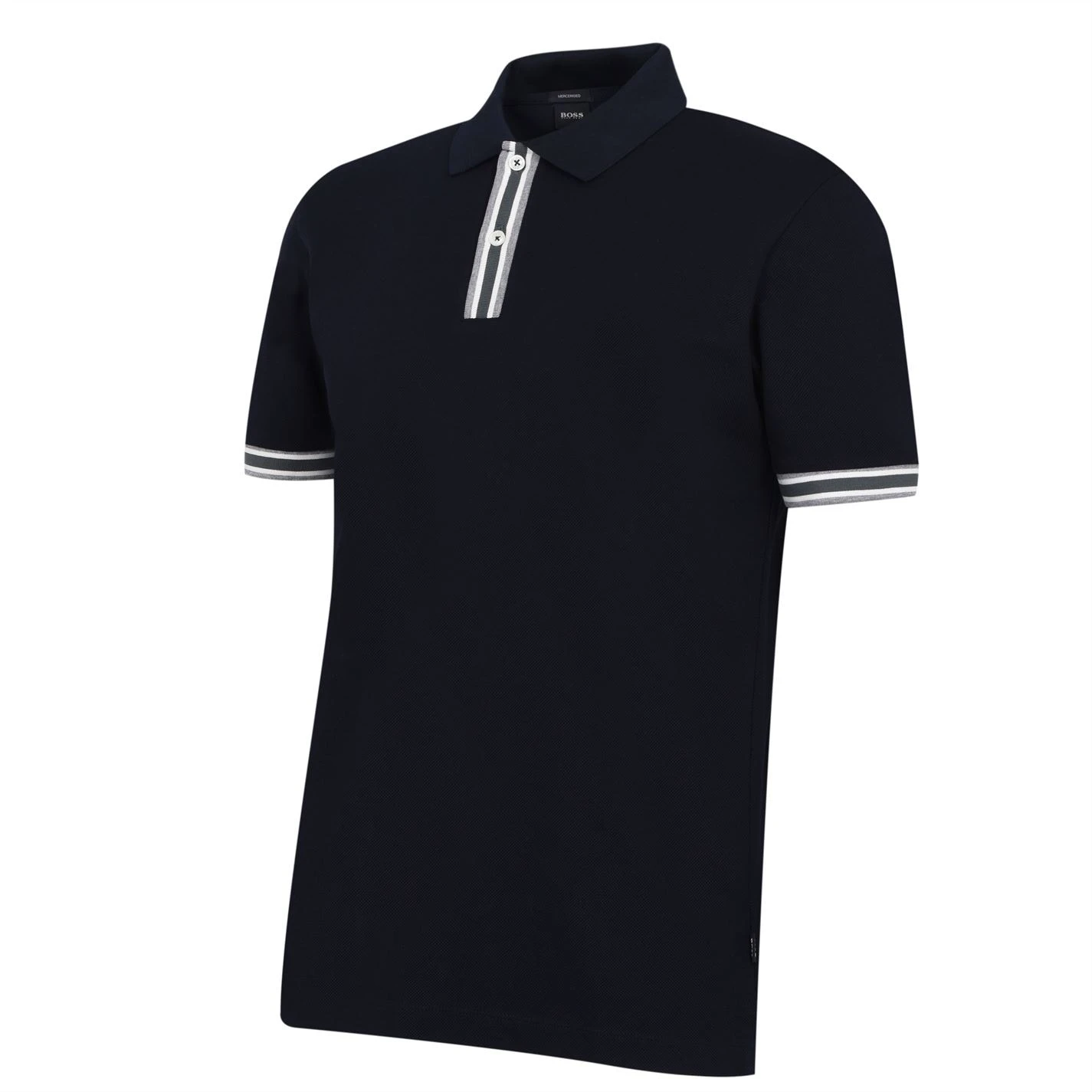 Update your collection with this Boss Parlay 126 Polo Shirt. Crafted with a folded collar and two button fastening placket for a secure fit, it features short sleeves with comfortable ribbed trims for a classic look. This polo shirt is designed with a signature logo and is complete with Boss branding.