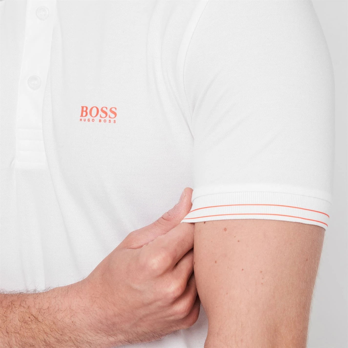 Refresh your collection with this Hugo Paule Polo Shirt. Constructed with a folded collar and three button fastening placket for a secure fit, it features short sleeves for a classic look with ribbed trims for comfort. This polo shirt is designed with a signature logo and is complete with Hugo branding.