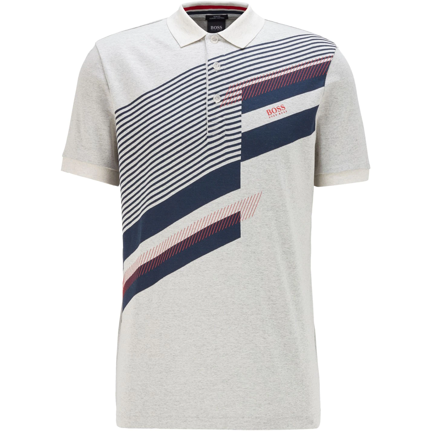 Update your collection with this BOSS Paule Polo Shirt. Crafted with a folded collar and a three button placket for a secure fit, it features short sleeves with comfortable ribbed trims for a classic look. This polo shirt is an all over print design with a signature logo and is complete with BOSS branding.