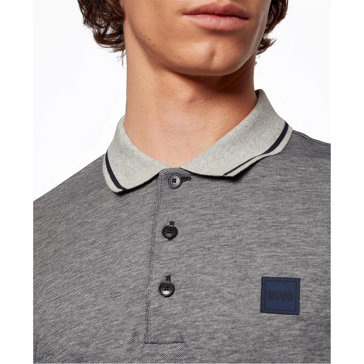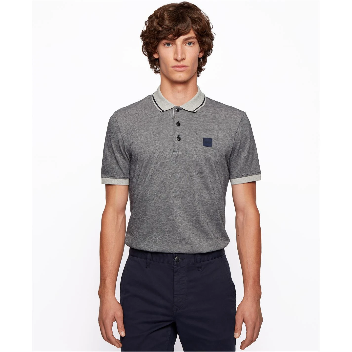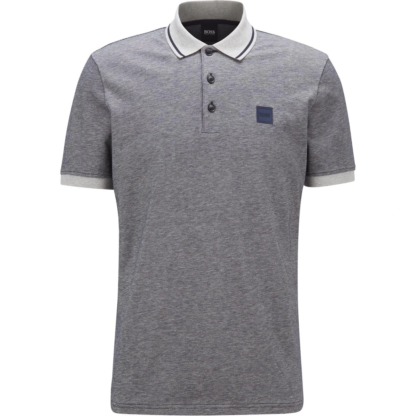 Enhance your collection with this BOSS Pedrive Polo Shirt. Constructed with short sleeves and ribbed trims for comfort, it features a folded collar and three button fastening placket for a secure fit. This polo shirt is designed with a signature logo and is complete with BOSS branding.