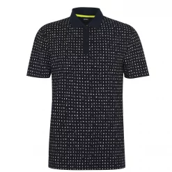 Refresh your collection with this Boss Pepol Polo Shirt. Constructed with a folded collar and a 2 button fastening placket for a classic look, it features short sleeves with ribbed trims for comfort. This polo shirt is an all over print design with a signature logo and is complete with Boss branding.