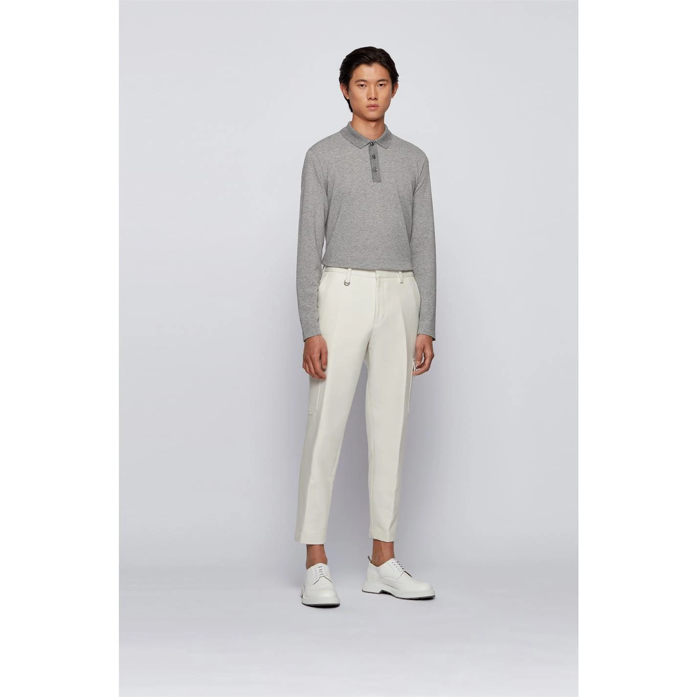 Enhance your collection with this BOSS Pittman Polo Shirt. Constructed with a folded collar and a three button fastening placket for a secure fit, it features long sleeves for a classic look. This polo shirt is designed with a signature logo and is complete with BOSS branding.