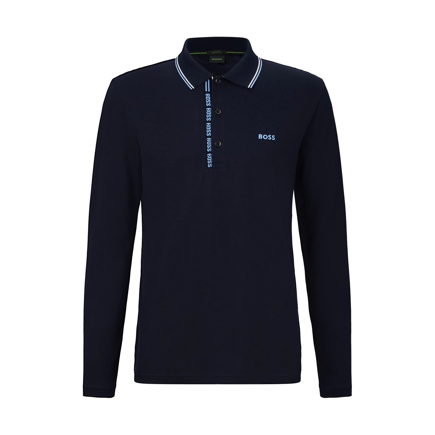 Refresh your collection with this BOSS Pleesy 4 Polo Shirt. Constructed with a folded collar and a three button placket for a secure fit, it features long sleeves and comfortable ribbed cuffs for a classic look. This polo shirt is a solid colouring throughout designed with a signature logo and is complete with BOSS branding.