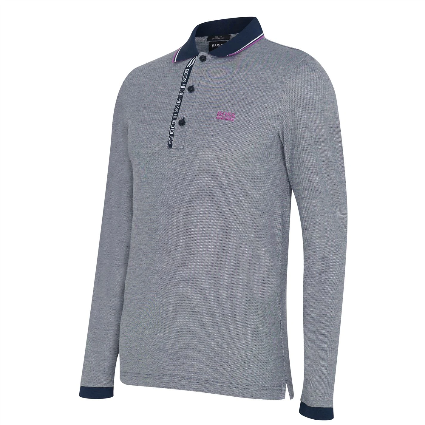 The Boss Pleesy 4 Polo Shirt is a great addition to casual wardrobe, crafted with long sleeves coupled with a fold down collar and button fastening placket that provides all day comfort. Tonal stitching coupled with contrasting detail to the collar and cuffs gives a standout stylish look, completed with the Boss branding to the chest.