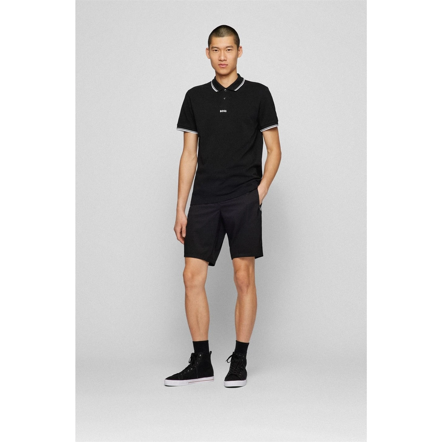 The Boss Polo Shirt is a great addition to your everyday wardrobe, crafted with a fold down collar, button fastening placket and short sleeves that offers a comfortable fit, a contrasting trim to the collar along with a solid colouring design gives a stylish look, finished off with the Boss branding to the centre chest.