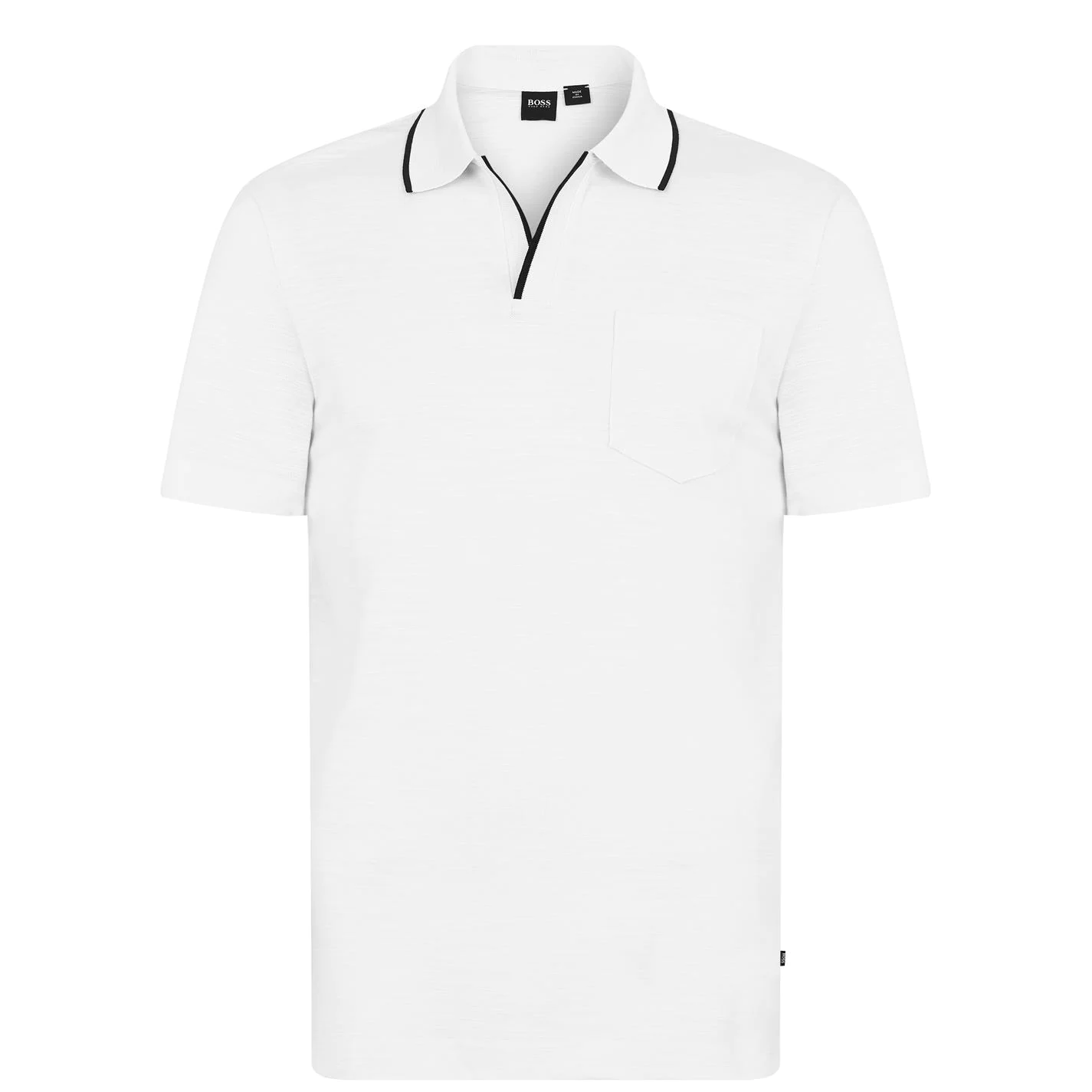 Refresh your collection with this BOSS Pye 10 Polo Shirt. Constructed with a folded collar, an open placket and a chest pocket for a classic look, it features short sleeves with ribbed trims for a comfortable fit. This polo shirt is designed with a signature logo and is complete with BOSS branding.