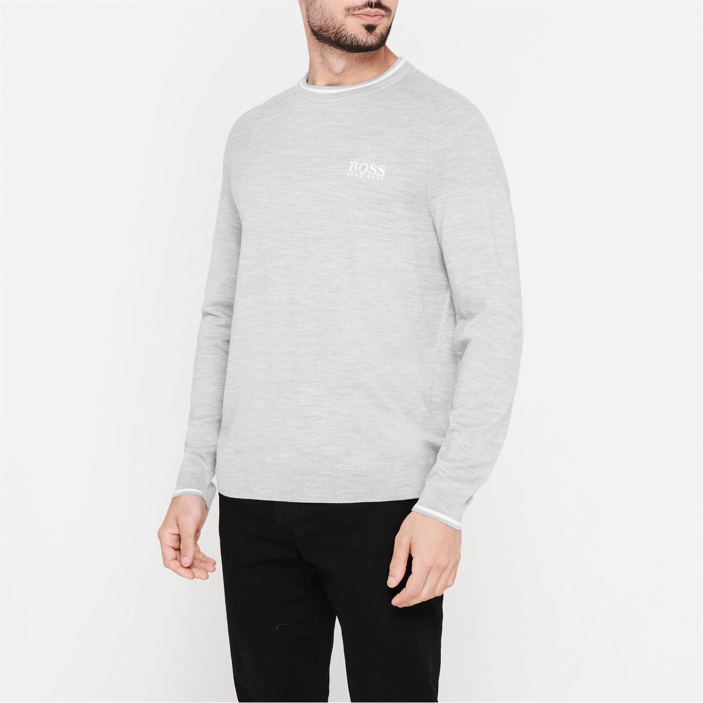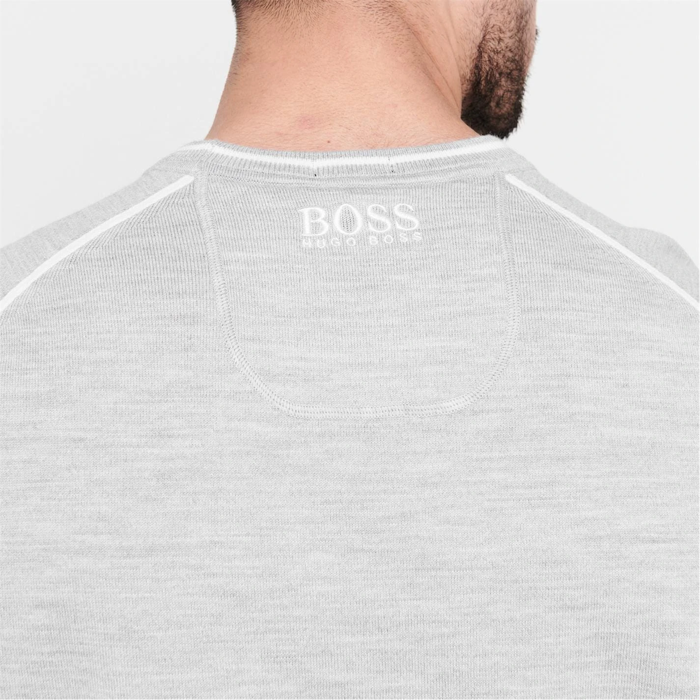 Refresh your seasonal wear with the Riceno Knit Jumper from Hugo Boss. made from a moisture managing woolmix, this pull over is designed with a round neck and long sleeves. With waffled details to the shoulders, this jumper is finished with a contrasting piping around the sleeves and neck, a well as the Hugo Boss signature to the chest and back of the neck.