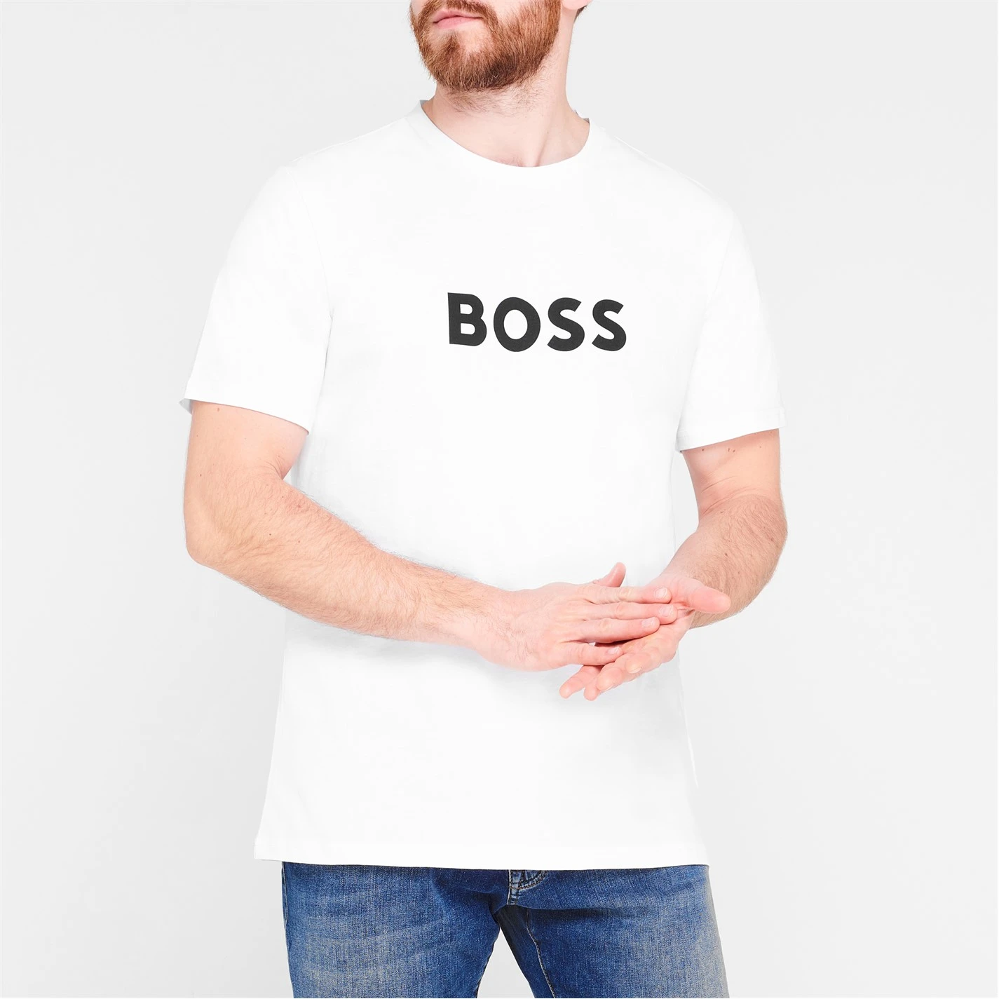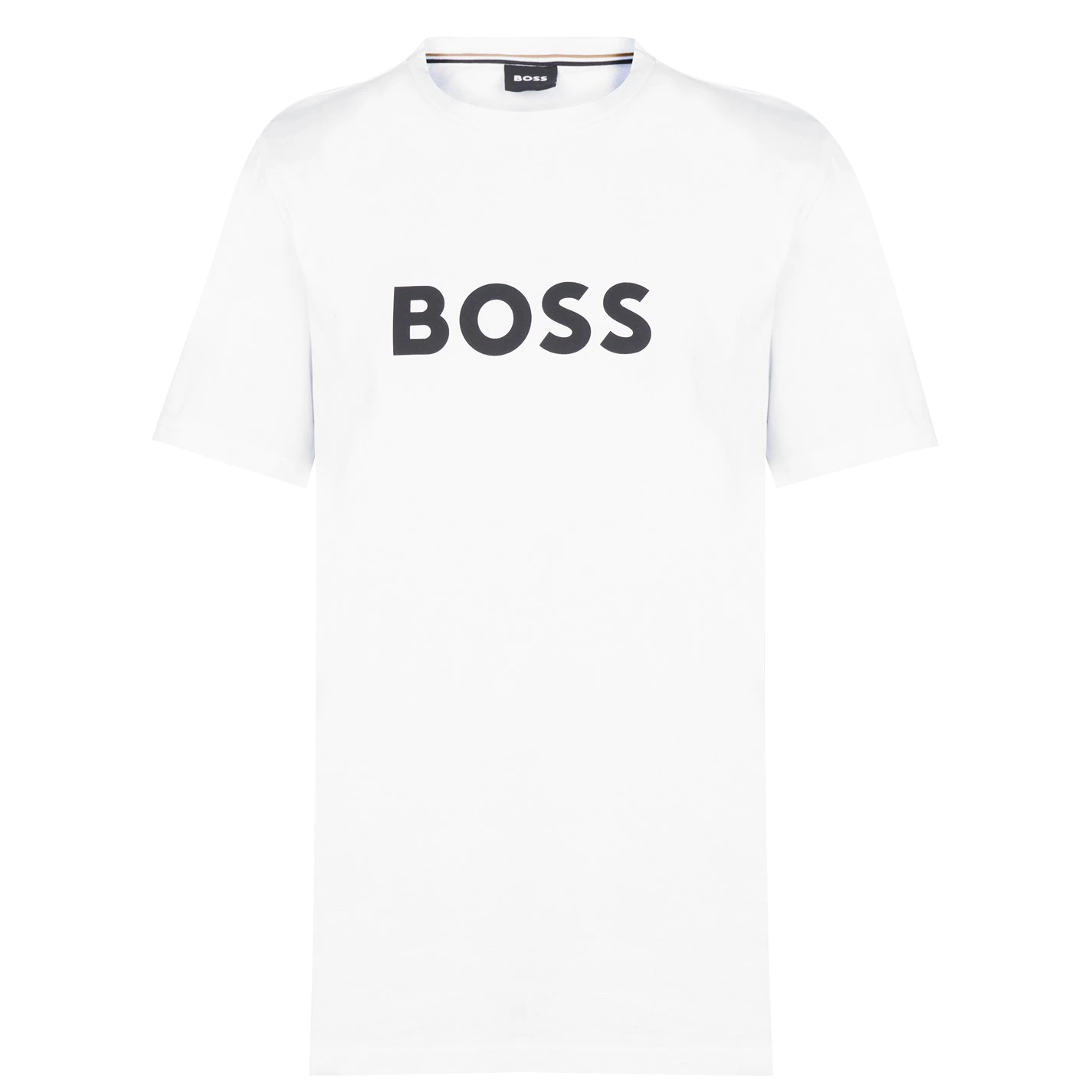 Update your collection with this Round Neck Logo T Shirt from BOSS. Crafted in a pure cotton composition, this t shirt is cut in a regular fit and features a ribbed round neckline with short sleeves, a straight hemline and elasticated trims for a comfortable fit. Designed in a solid colouring throughout, the look is finished with the brand’s logo printed to the chest for brand recognition. Machine washable at 30 degrees.