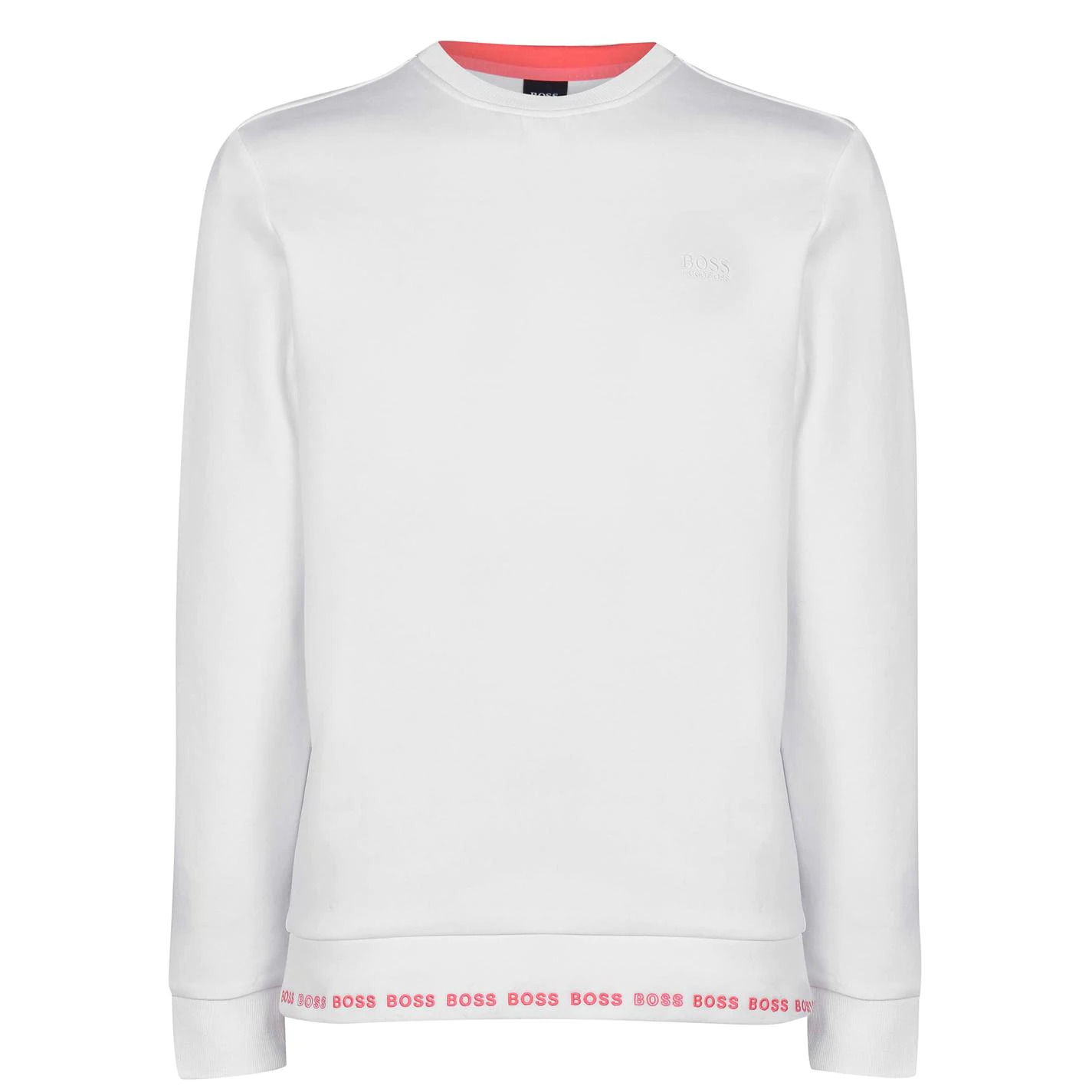 Upgrade your sweatshirt collection with this simple yet statement piece from Hugo Boss. Finished with block colour throughout, the sweatshirt features long sleeves, a chunky ribbed crew neckline and regular fit. Decorated with contrasting stitching to the trim, Hugo Boss branding completes this urban fit.