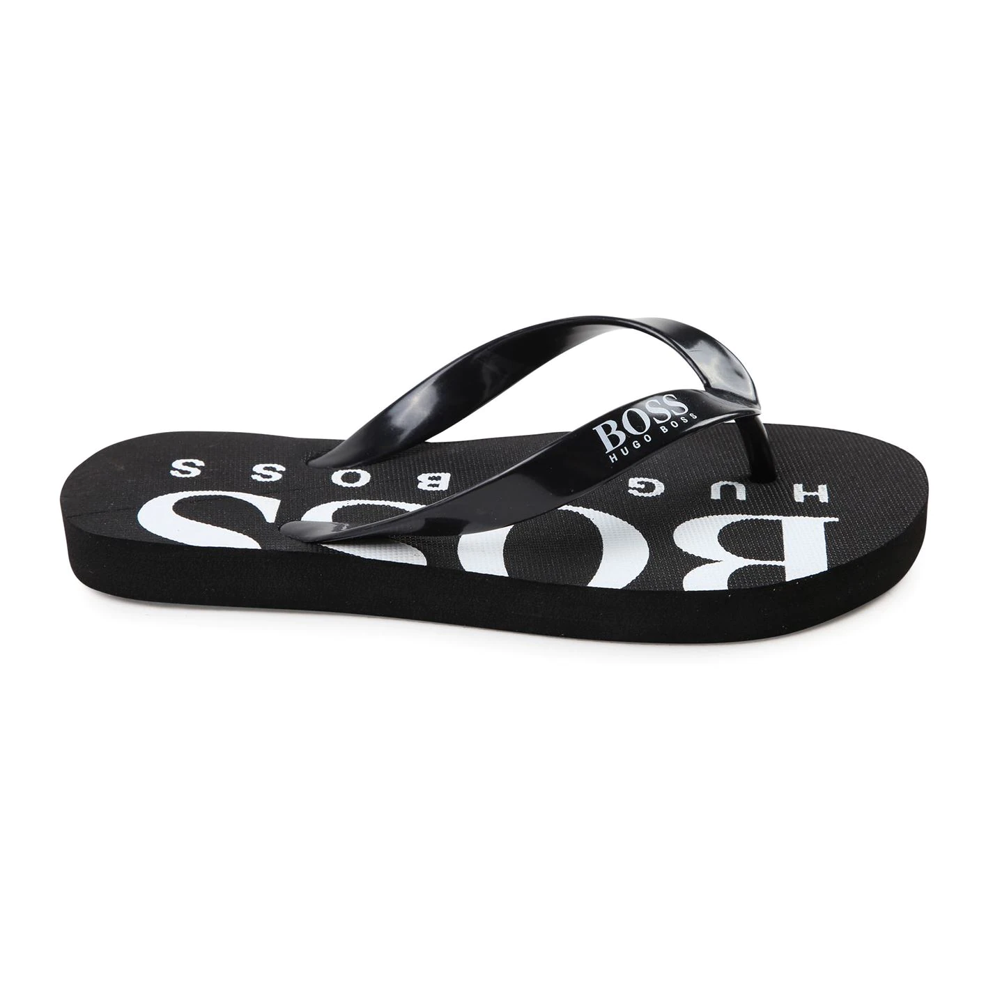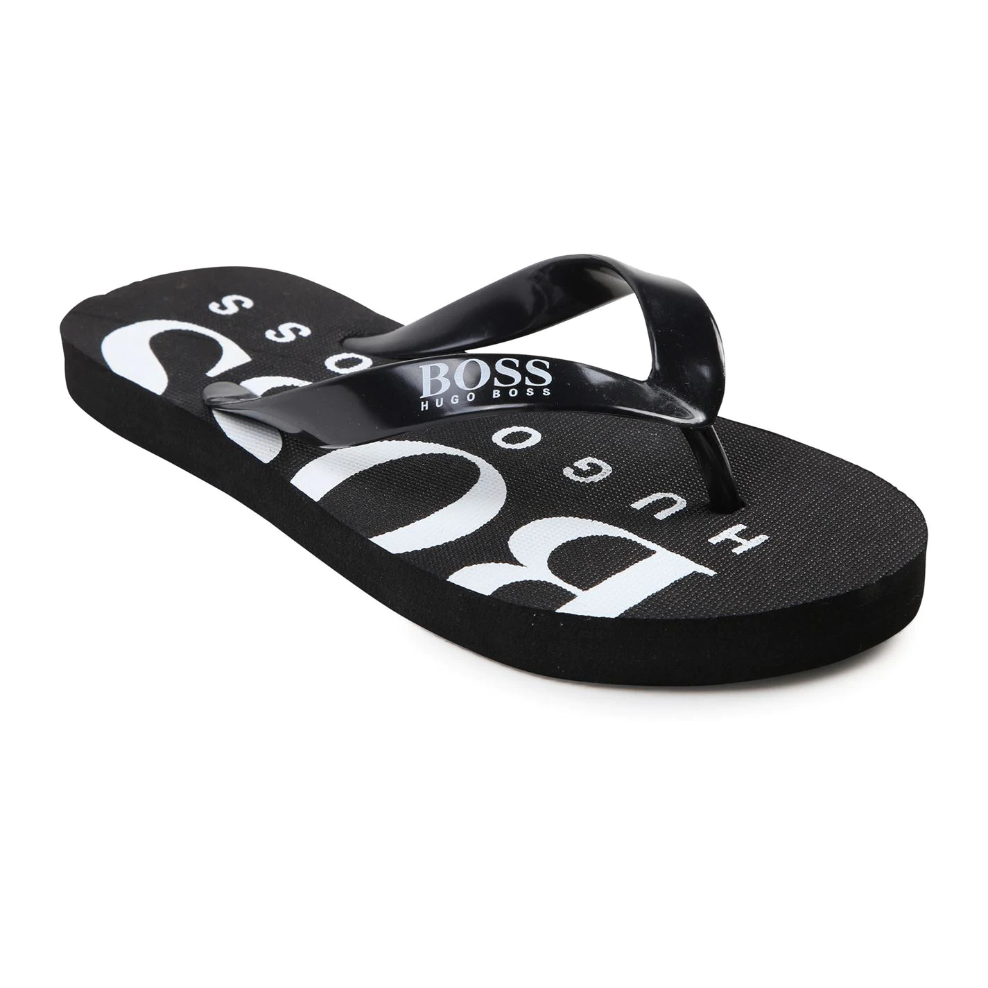 EVA flip flops, flexible sole, color contrasted logo print on sole top, tone on tone embossed logo print undersole.
