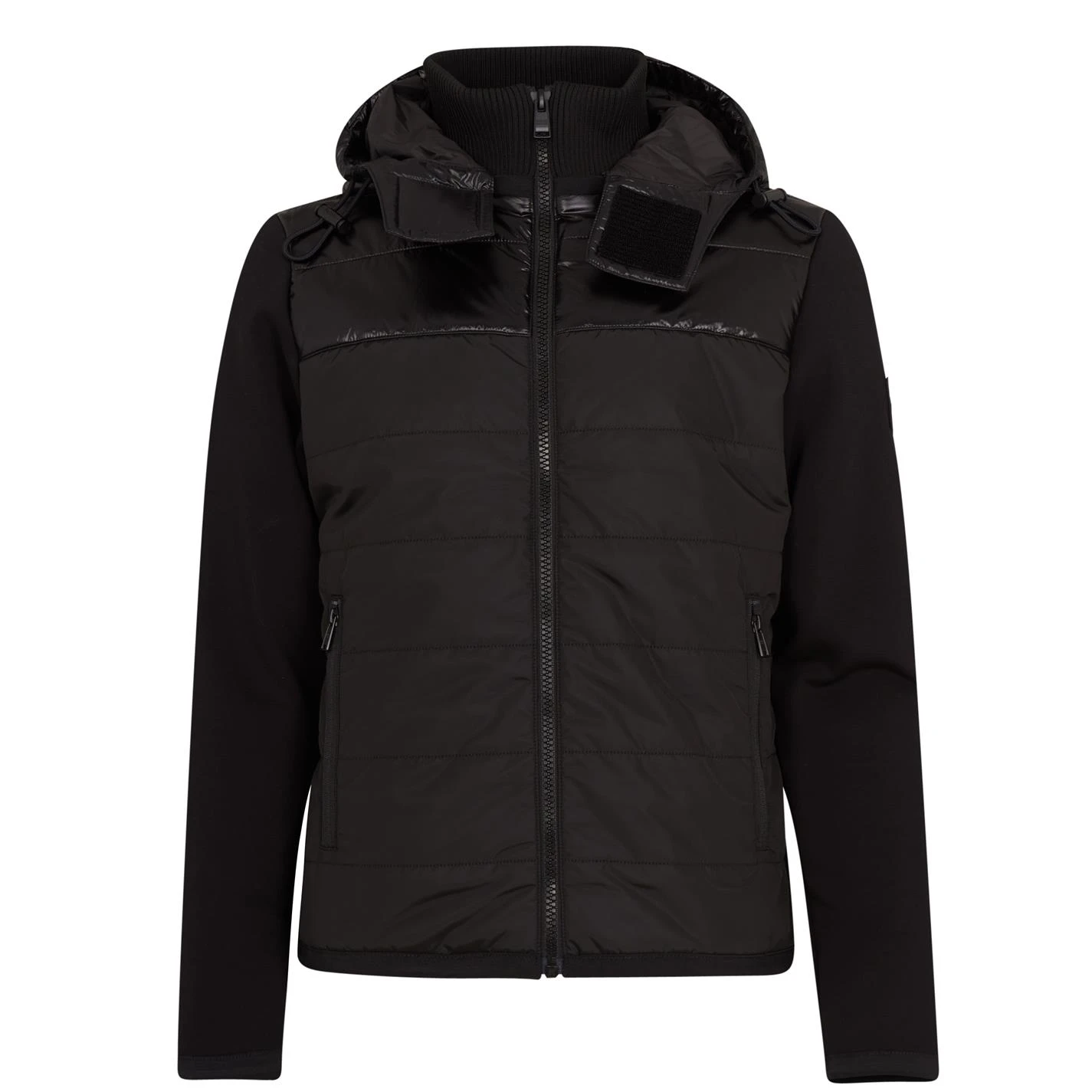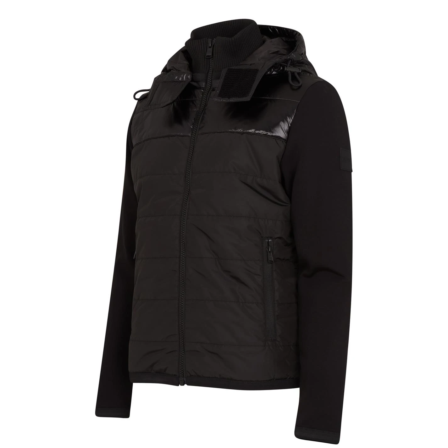 Refresh your collection with this BOSS Seeger 35 Jacket. Constructed from a soft Cotton-blend, the main silhouette details a padded two-tone body and contrasting fabricated long sleeves for an all day comfortable fit. Designed with a full zip fastening, ribbed funnel neckline, hooded collar with drawcords and two zipped hand pockets, this classic cut construction details a solid colour-block for a minimal look.