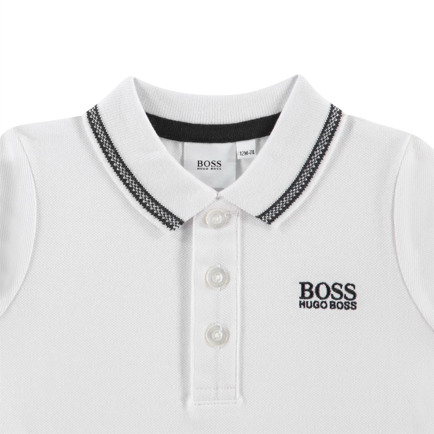 This short-sleeved cotton piqué polo shirt from BOSS is a must-have in any baby’s wardrobe. This simple yet elegant low-maintenance garment fastens with buttons and features the BOSS logo embroidered on the chest.