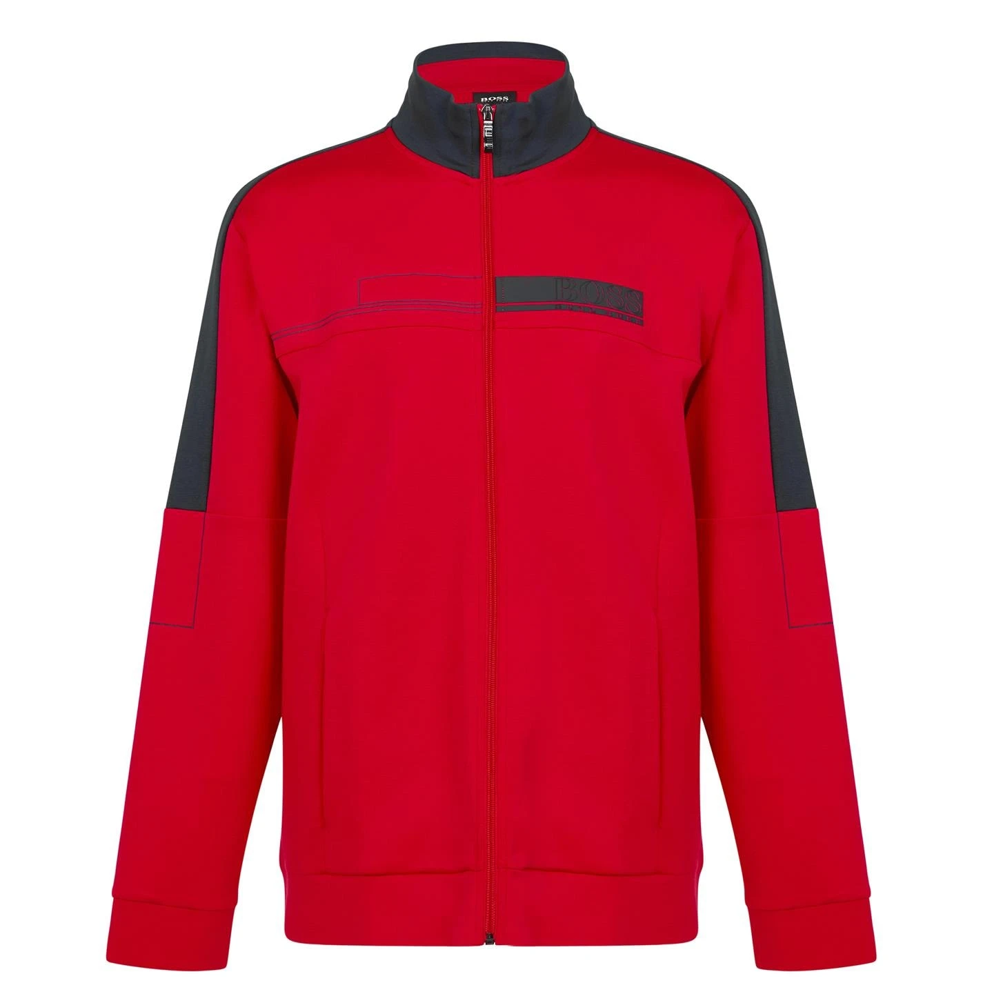 Update your outerwear selection with the Boss Skaz 1 Full Zip Sweater. A cotton blend construction with ribbed trims and a central zip fastening to help achieve a classic everyday aesthetic. The pop of colour will enliven your ensemble with the Boss branding completing the high quality design.