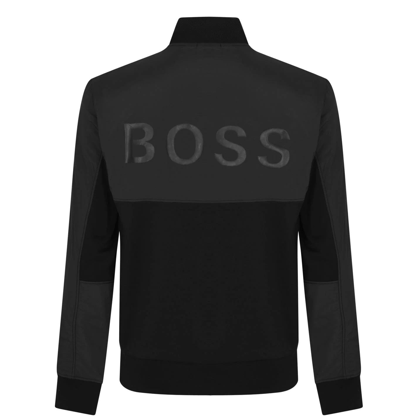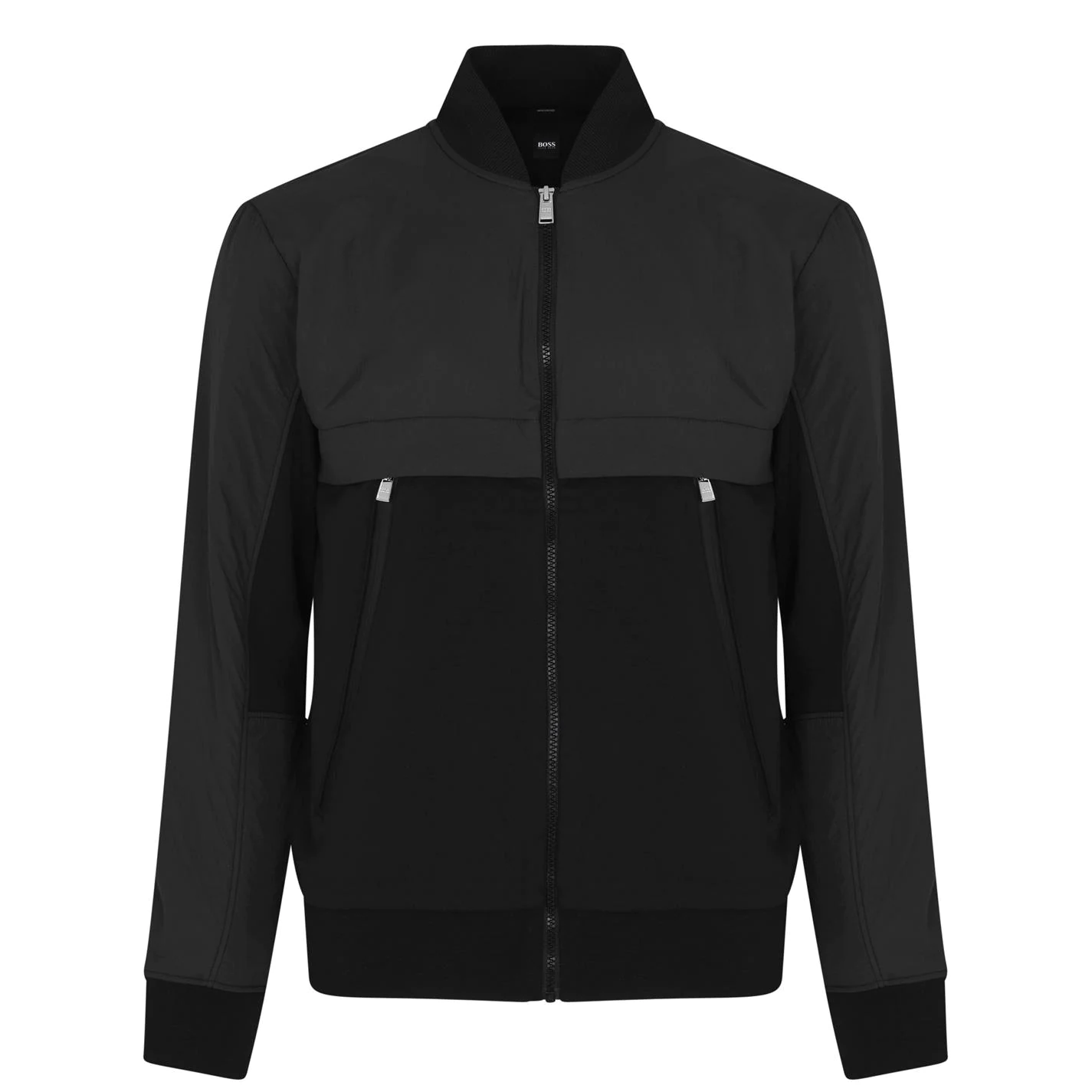 Update your collection with this Boss Skiles 37 Full Zip Bomber Jacket. Crafted with full zip fastening and long sleeves for a classic look, it features ribbed trims for comfort and two zipped hand pockets for small possessions. This jacket is designed with a signature logo printed across the back and is complete with Boss branding.