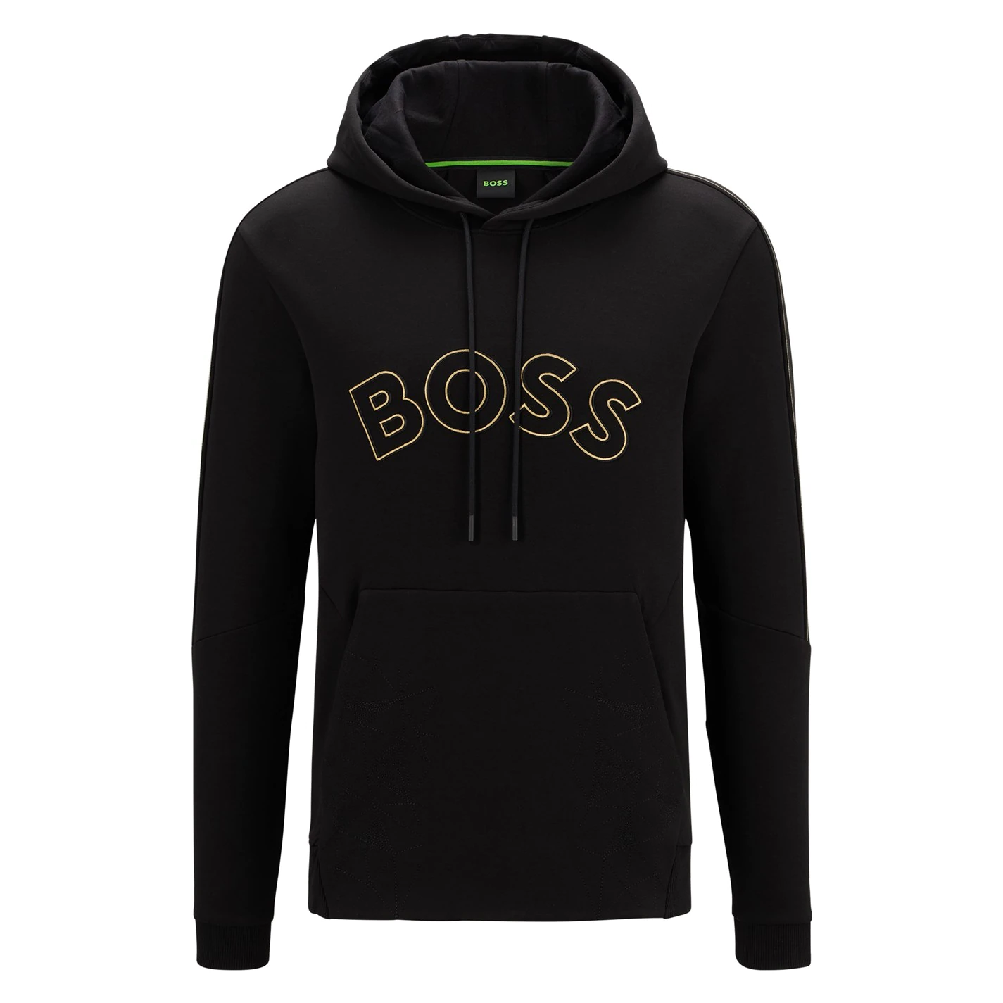 Update your collection with this BOSS Soody 2 OTH Hoodie. Crafted with long sleeves and ribbed cuffs for comfort, it features a drawstring adjustable hood and a kangaroo pocket for a classic look. This hoodie is a solid colouring throughout designed with a signature logo and is complete with BOSS branding.
