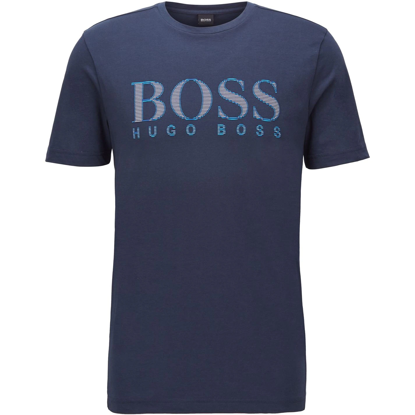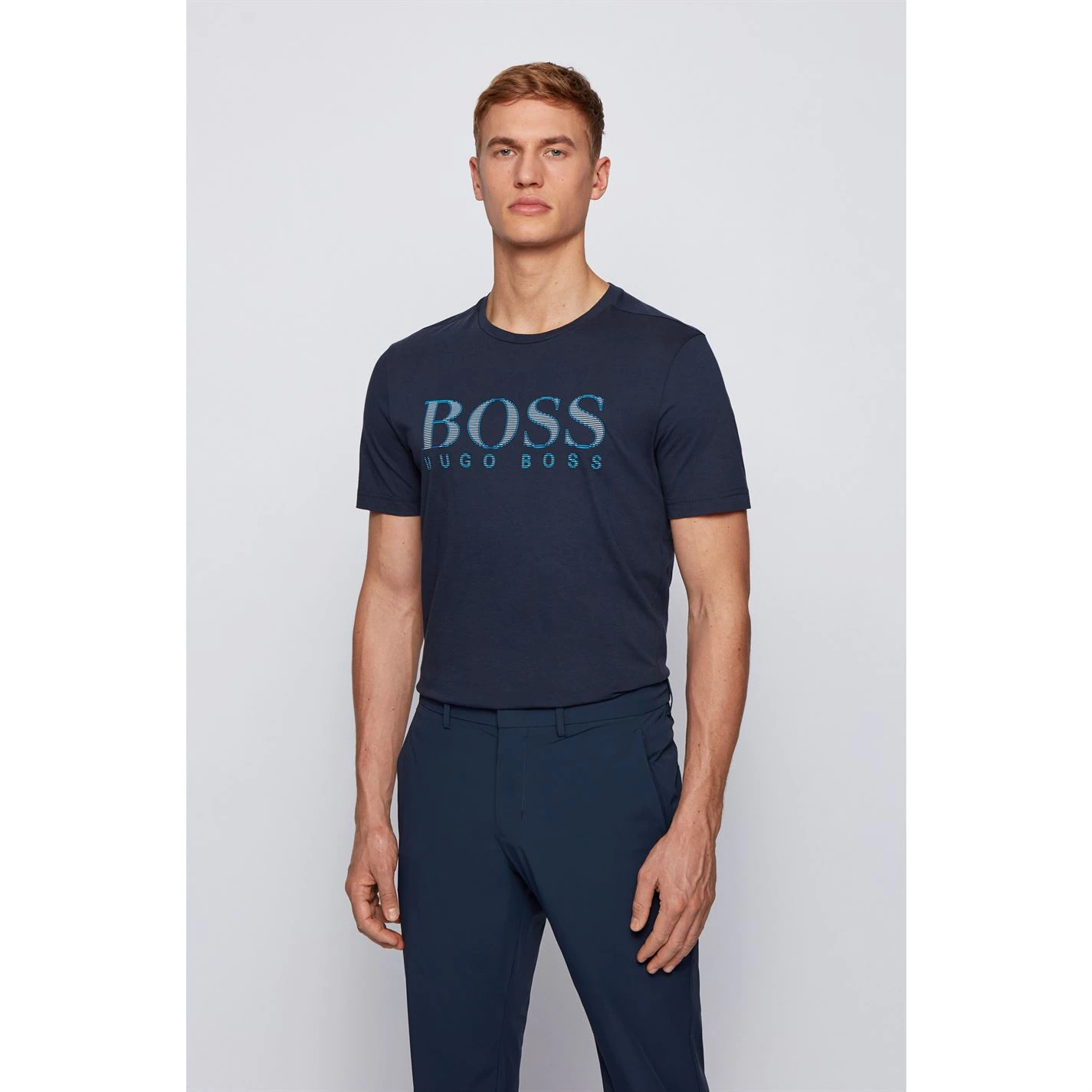 Update your collection with this Boss T5 T Shirt. Crafted with short sleeves and a crew neck for a classic look, it features ribbed trims for a guaranteed comfortable fit. This t shirt is designed with a signature logo printed across the chest and is complete with Boss branding.