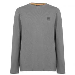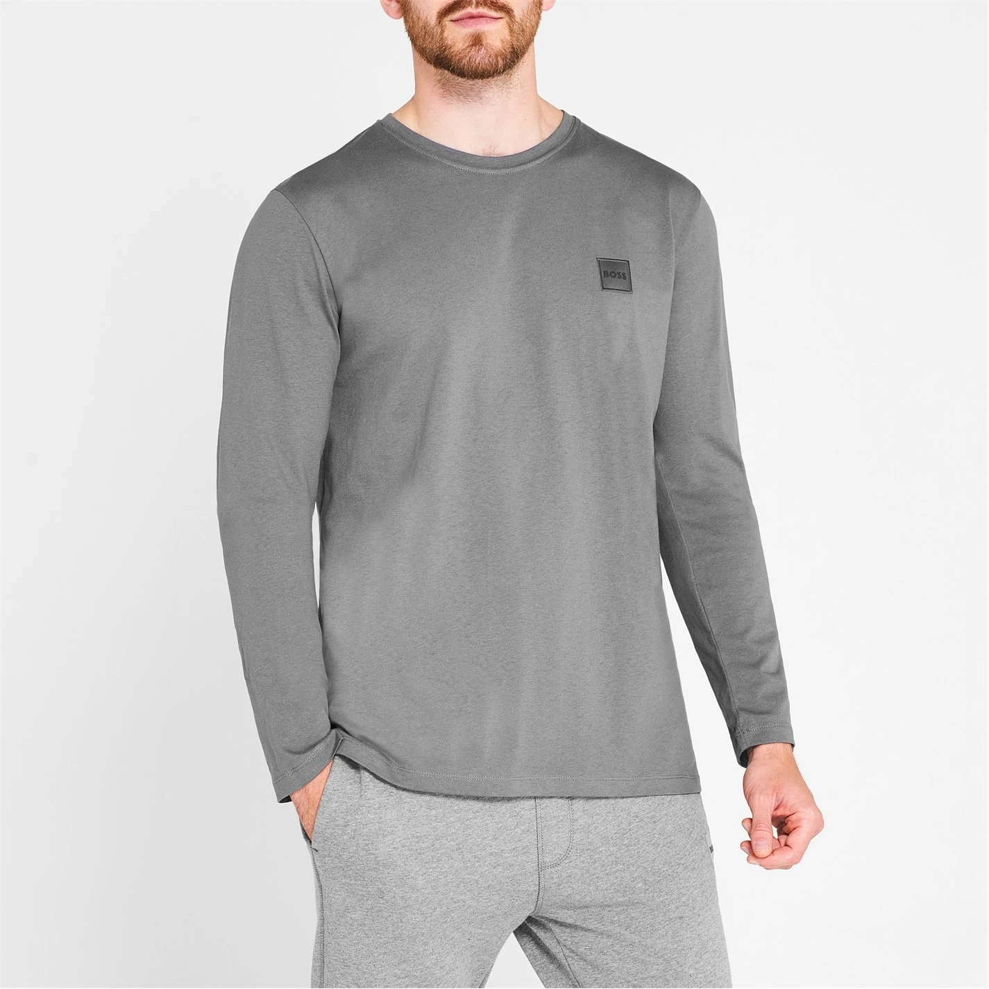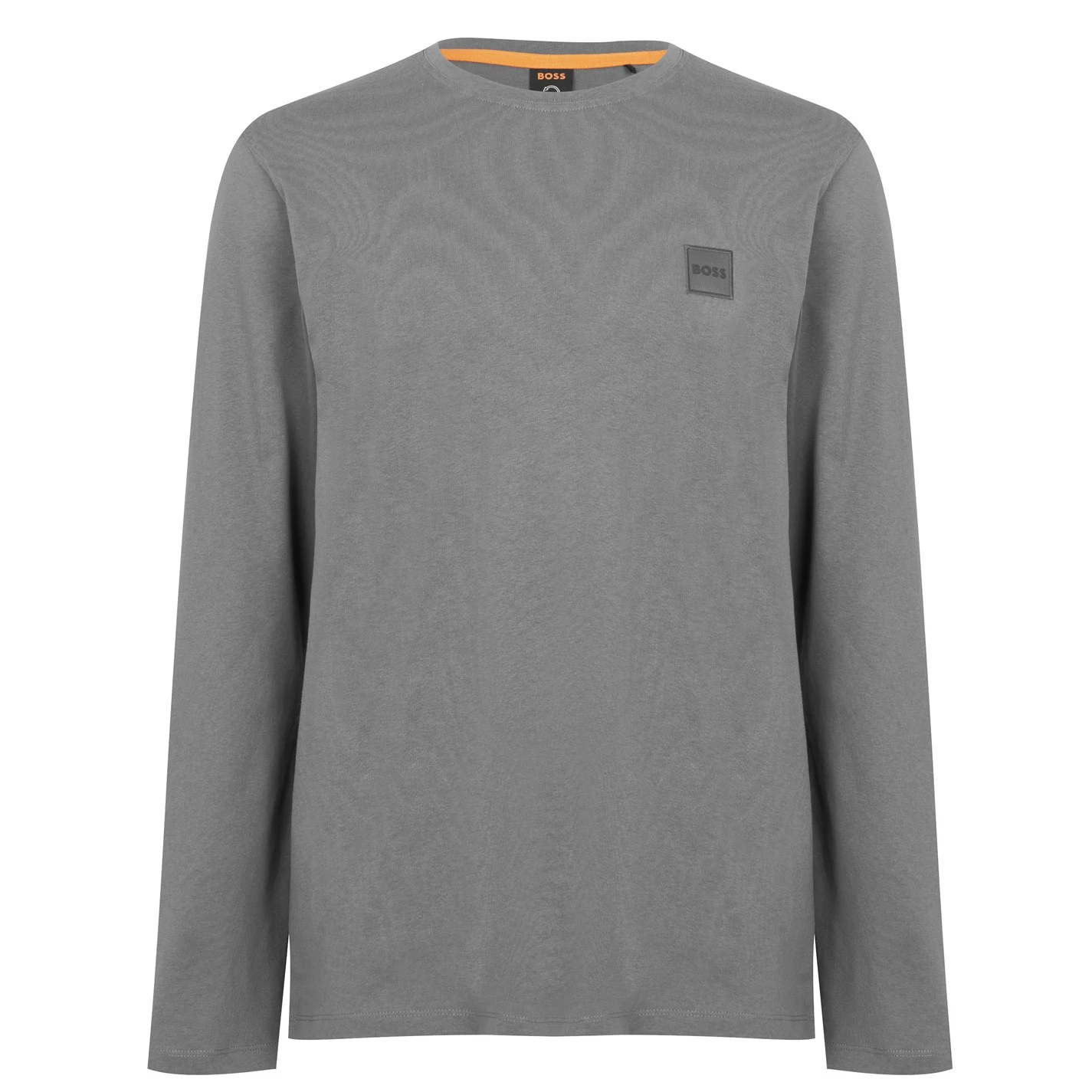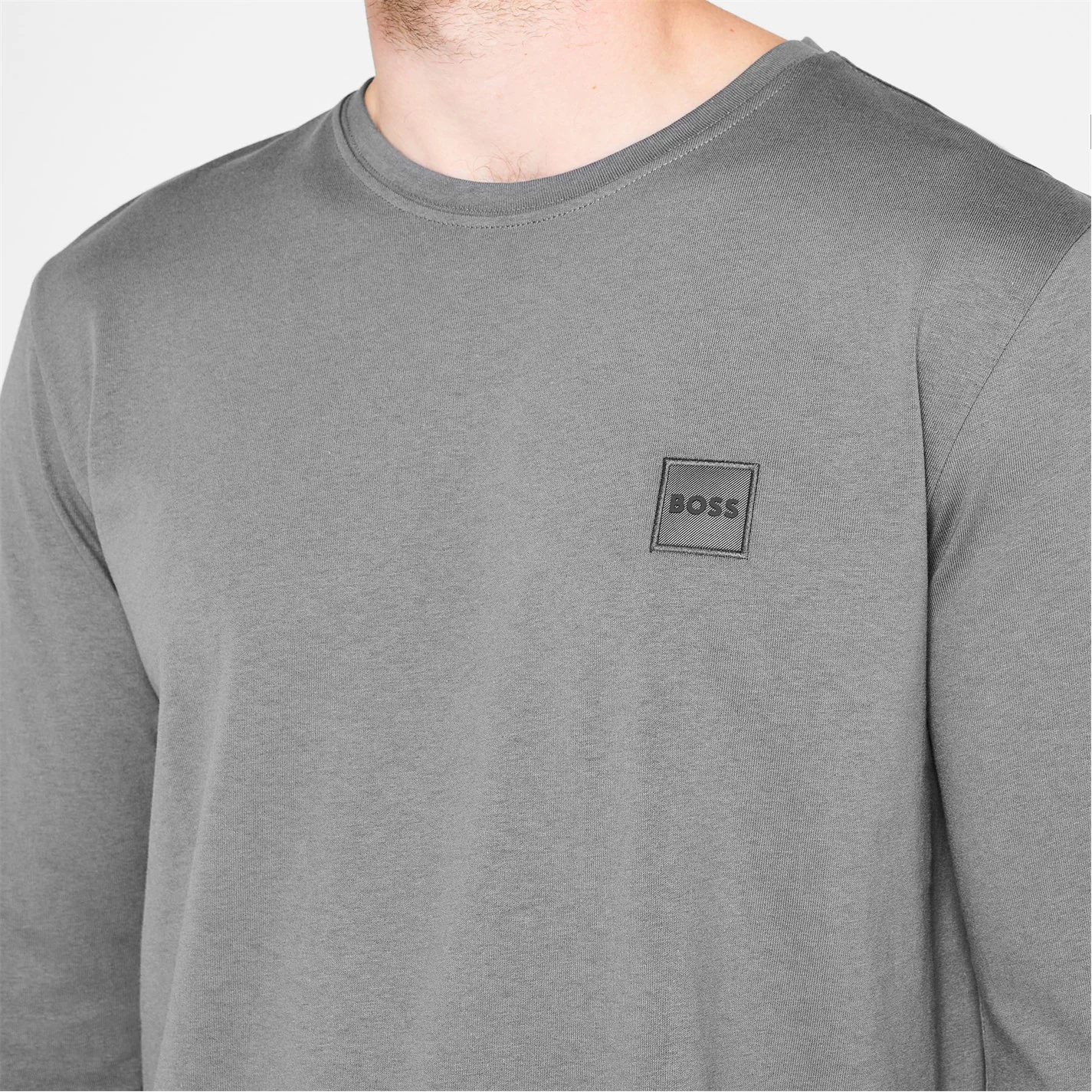 Elevate your collection with this BOSS Tacks Long Sleeve T Shirt. Crafted with long sleeves and a ribbed crew neckline for a classic look, it features elasticated hems for a comfortable fit. This t shirt is a solid colouring throughout designed with a signature logo and is complete with BOSS branding.