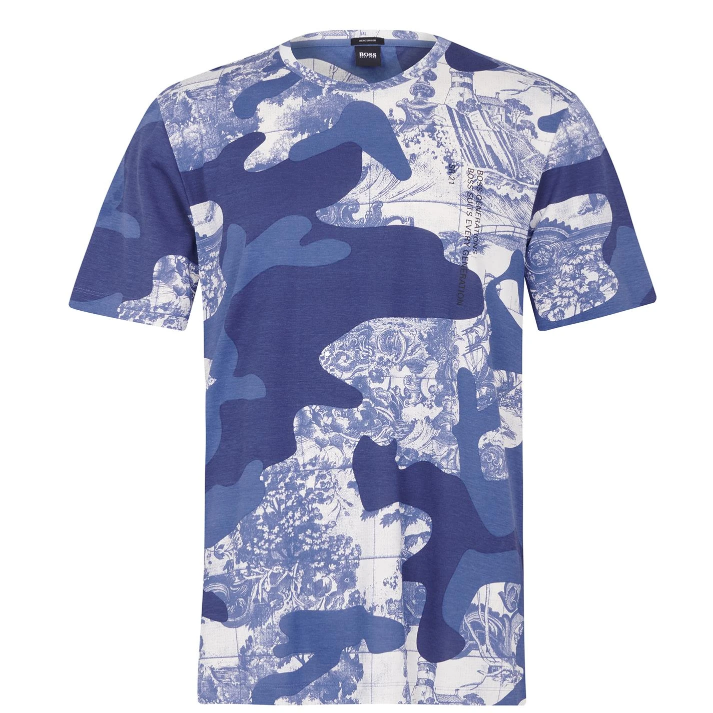 Elevate your collection with this BOSS Tames T Shirt. Crafted with short sleeves and a ribbed crew neckline for a classic look, it features elasticated hems for a comfortable fit. This t shirt is an all over print design with a signature logo and is complete with BOSS branding.