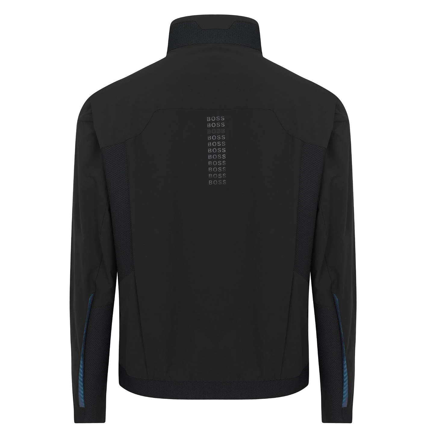 Improve your outdoor collection with the Boss Taurus Jacket. Crafted with a full frontal zip fastening, two side zipped pockets, long sleeves, a raised collar and ribbed trims, this contributes to the lightweight and stretchy design. Whilst the jacket is decorated in a solid block colour throughout, it features separate coloured trims on the inner arms and zipline. The jacket is finished with the Boss Logo on the left arm.