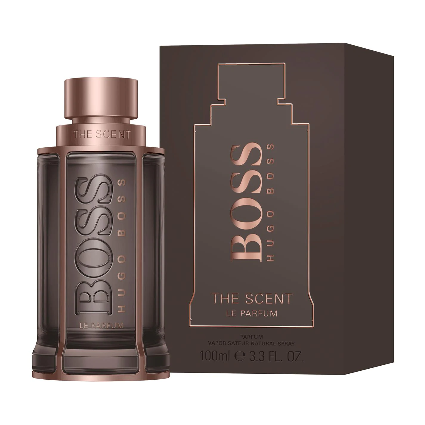 The iconic bottle is lacquered in a sensual shade of taupe and set within a rose gold cage. Presented in a taupe box, BOSS The Scent Le Parfum for men is a powerful fragrance that takes seduction into a whole new dimension.