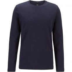 Refresh your collection with this BOSS Thias T Shirt. Constructed with a ribbed crew neckline and long sleeves for a classic look, it features elasticated hems for a comfortable fit. This t shirt is a solid colouring throughout and is complete with BOSS branding.